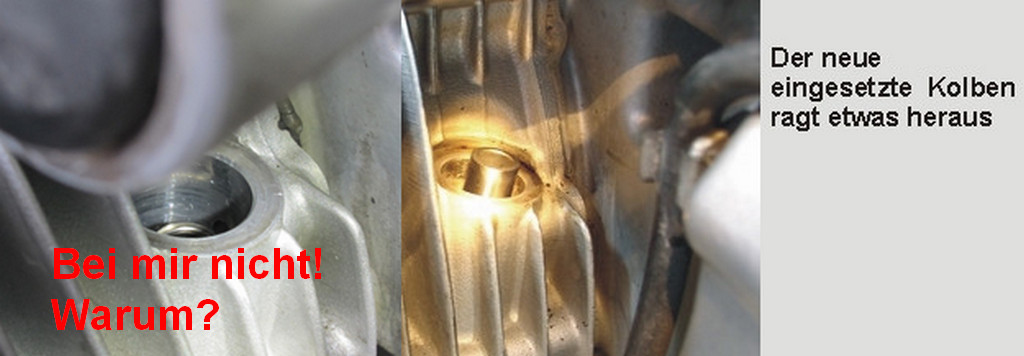 Beim Einbau zeigt Gert auf seiner Seite, das der neue Kolben beim "reinlegen" / auflegen auf die Gleitschiene oben etwas herausschaut. Das war bei mir nicht der Fall, seht hier: