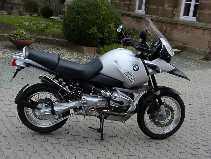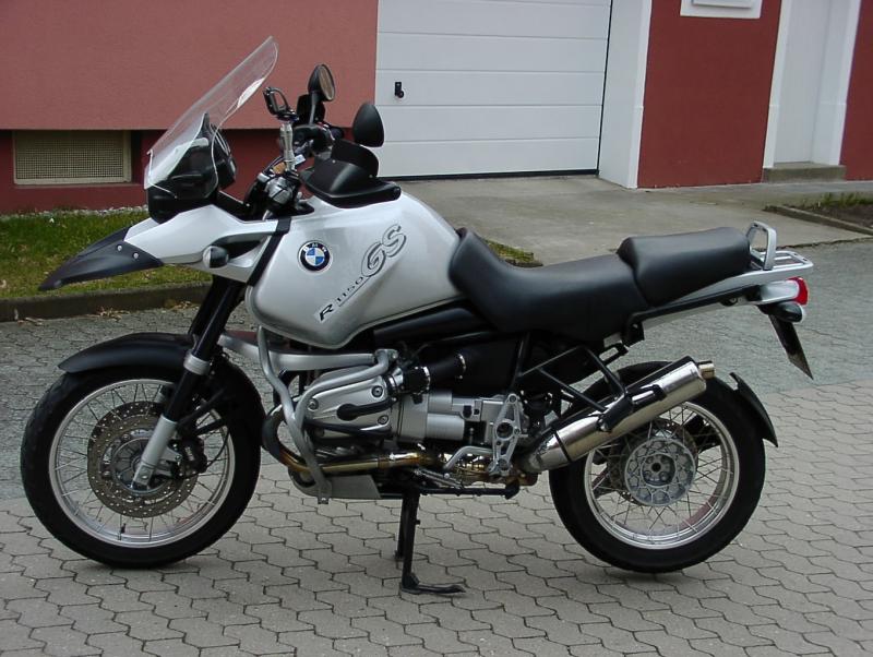 Zubehör: ADV Kotflügelverbreiterung, großes Windschild verstellbar. Tankrucksack mit Magneten. Zach Auspuff (Original vorhanden). Sturzbügel. BMW Kofferträger. Alu-Zylinderschutz von Touratech 2 Wochen alt (neu: 115.-, nicht abgebildet).
