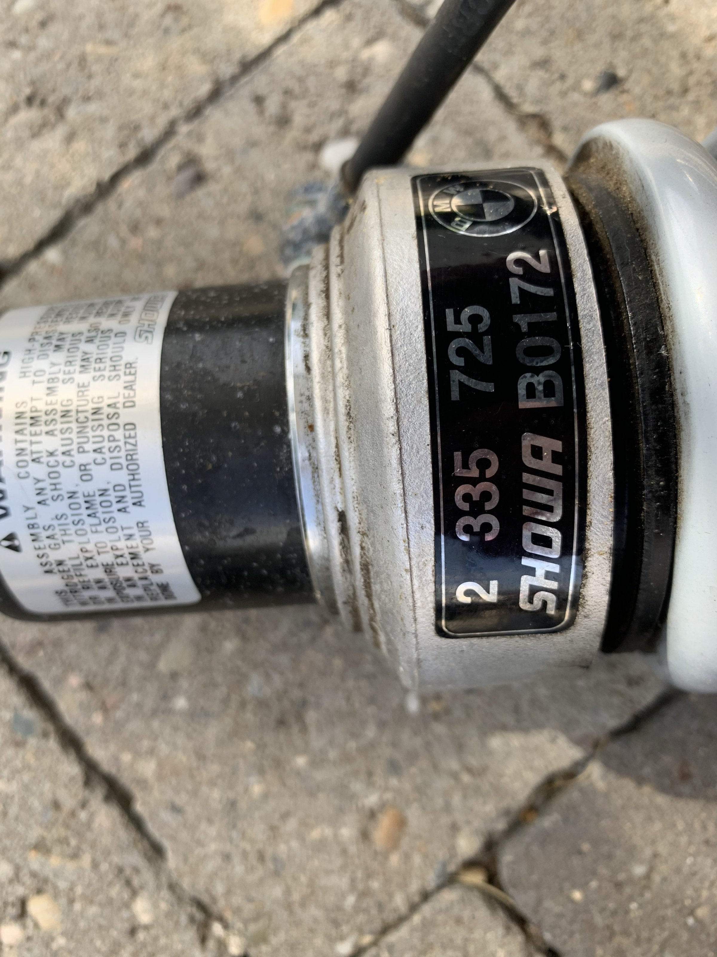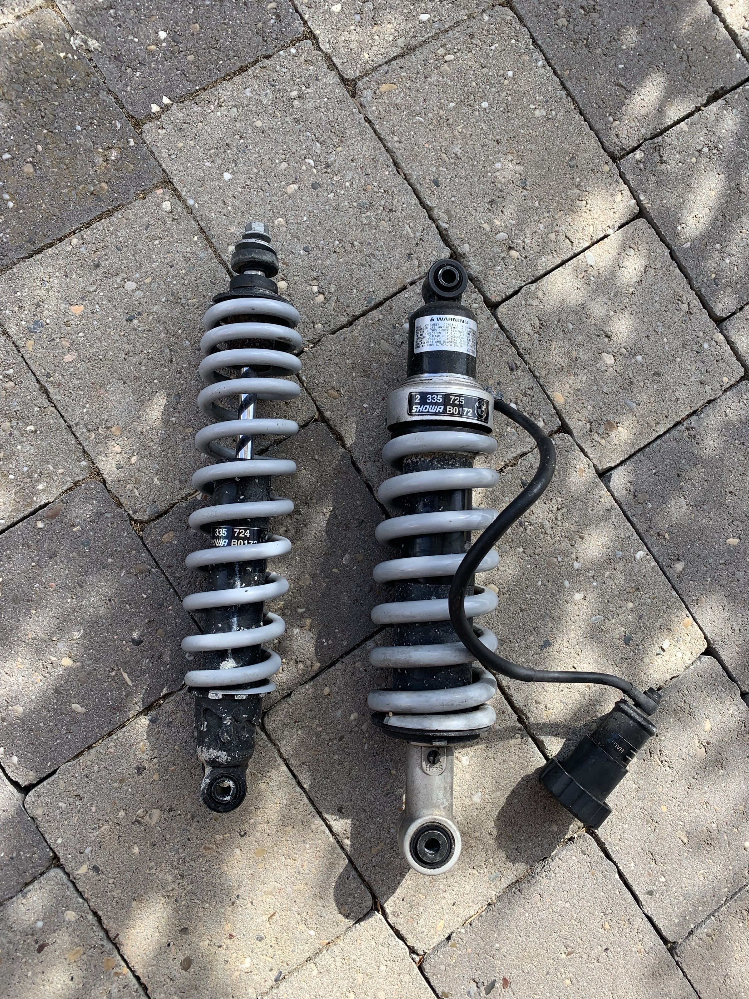 Dann habe ich noch 2 Showa-Federbeine, die ich vor ca. 5 oder Jahren mal zu meiner GS gekauft habe. Die Federbeine wollte ich überholen lassen und dann in meine alte GS einbauen. Habe es aber nie gemacht. Ich meine mich zu erinnern, dass der Verkäufer meinte, dass die so 40-50.000 km auf dem Buckel haben.