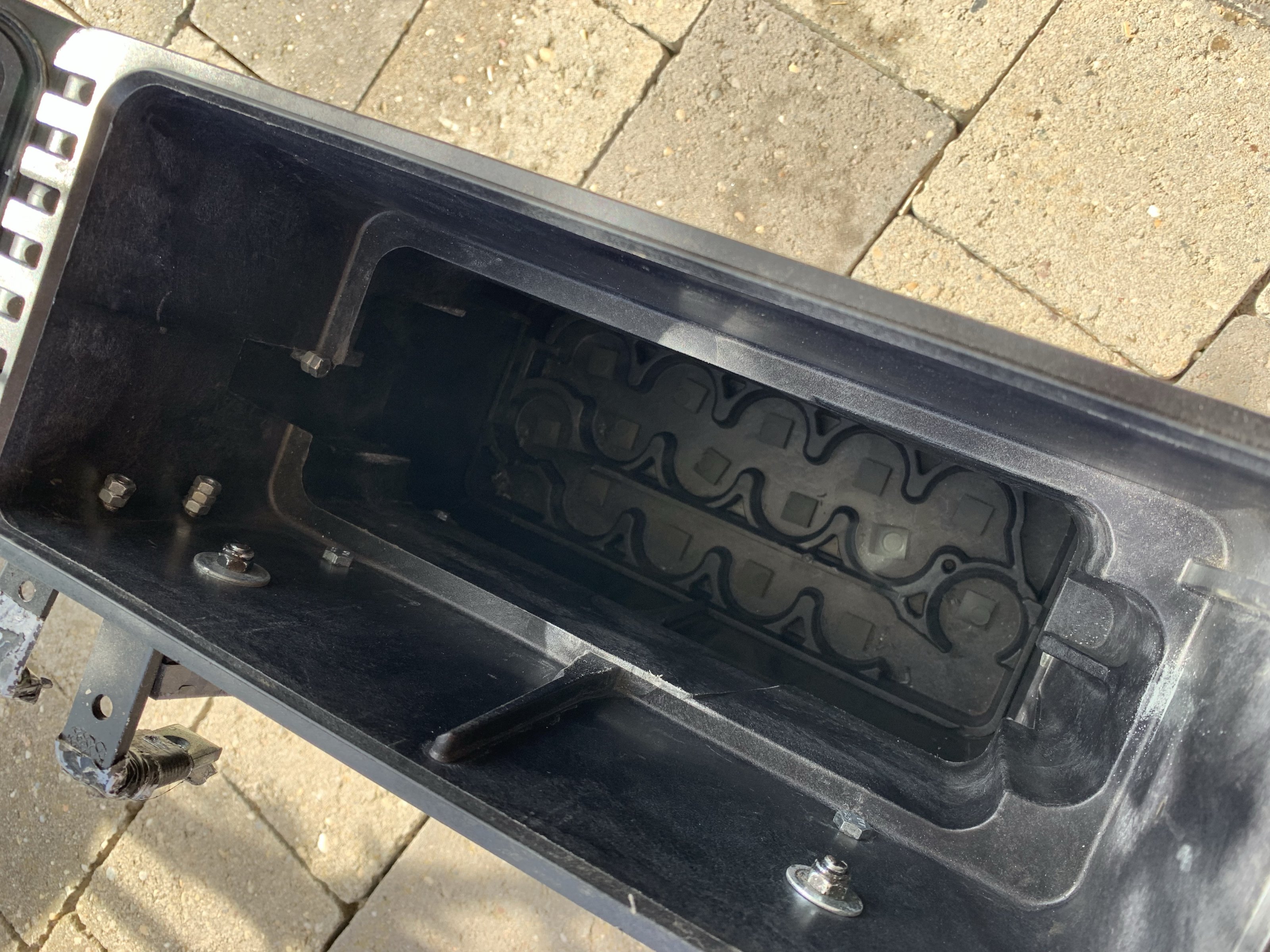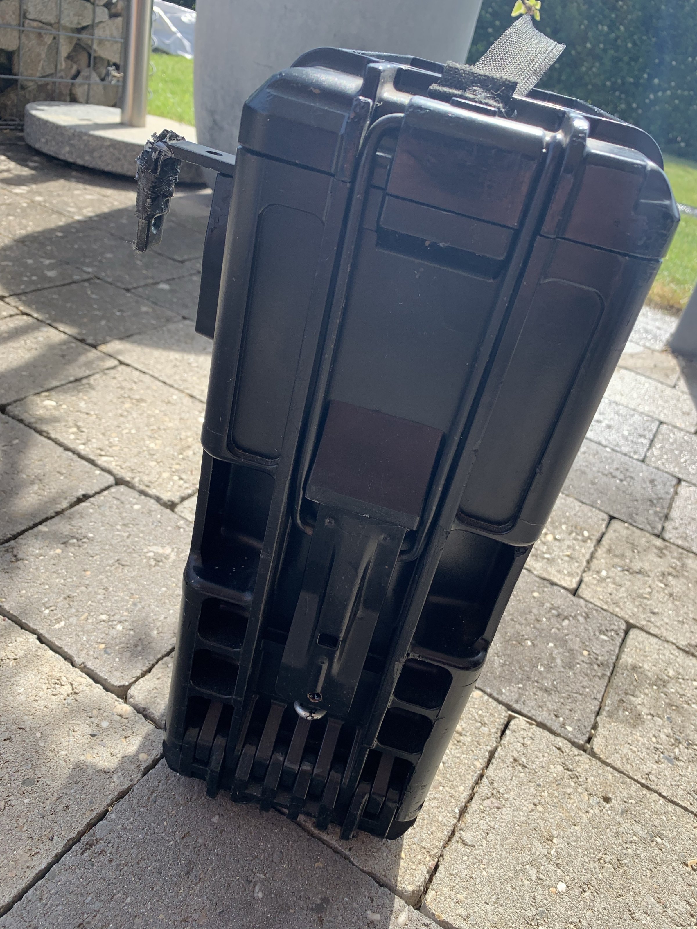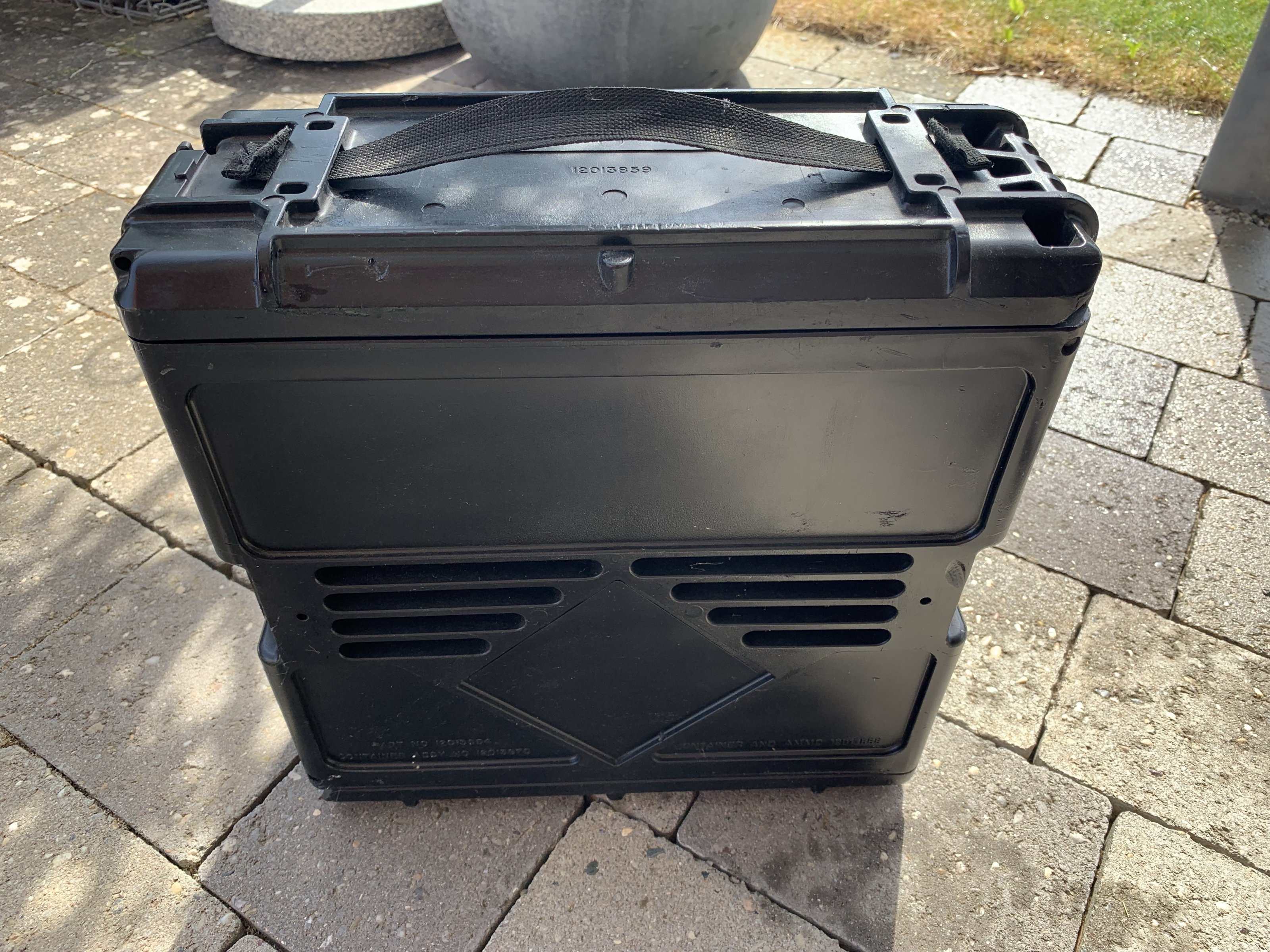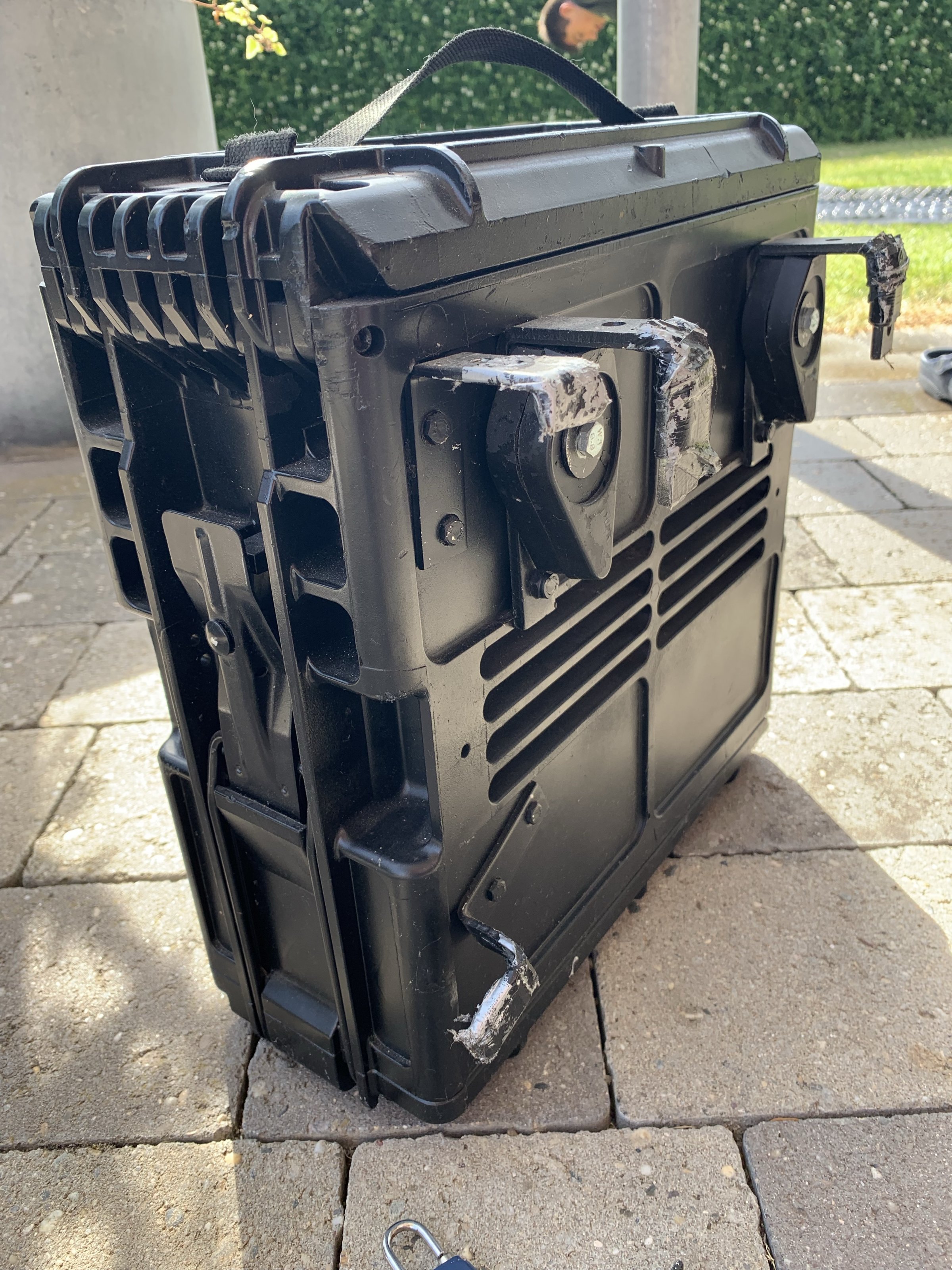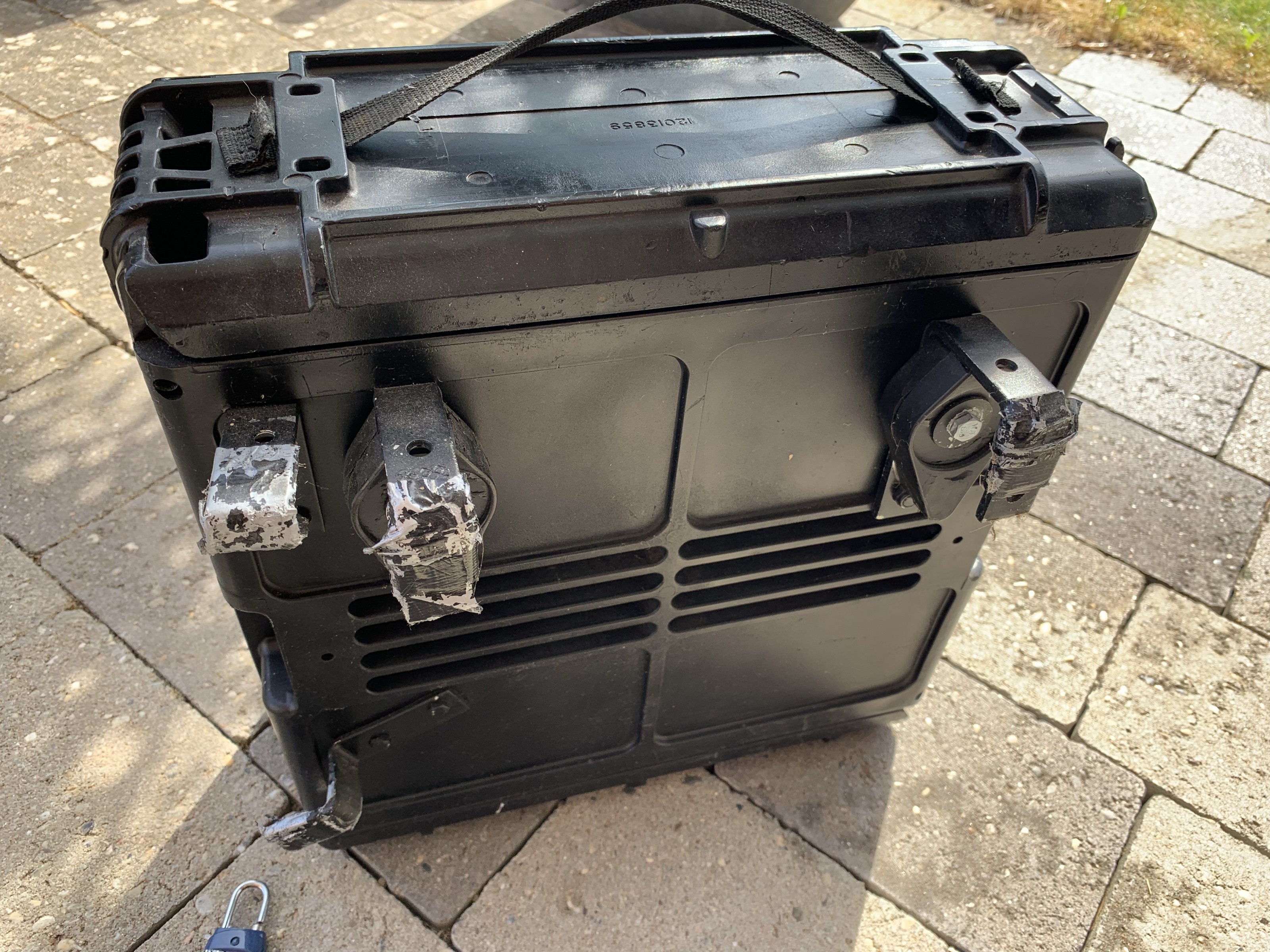 Eine Munitionskiste die ich zu einem Seitenkoffer umgebaut hatte. Diese passt perfekt an die original Kofferhalter. Die Kiste ist schön schmal und dicht. Hatte die mal zusammen mit einem Ortlieb-Sack bei ‚ner 3 Tagestour und statt einem Tankrucksack auch richtig gut.
