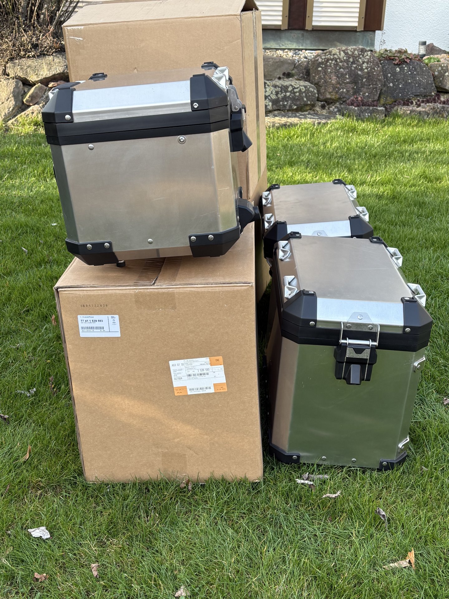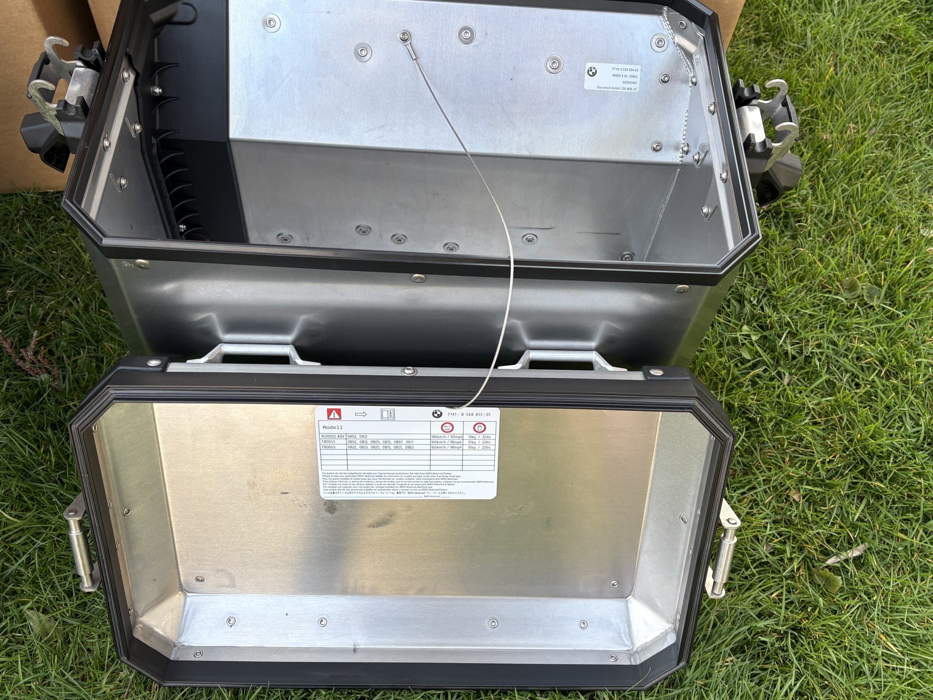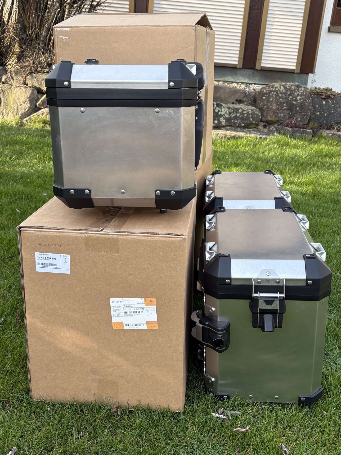 Verkaufe ein originales BMW 1200 1250 GS und Adventure Kofferset aus Aluminium. Das Topcase habe ich circa 8000 km auf dem Motorrad genutzt , die Seitenkoffer bei zwei Touren. Das Topcase hat das originale Rückenpolster. Mit dazu 6 neuwertige Schlösser zum codieren auf den eigenen Schlüssel.