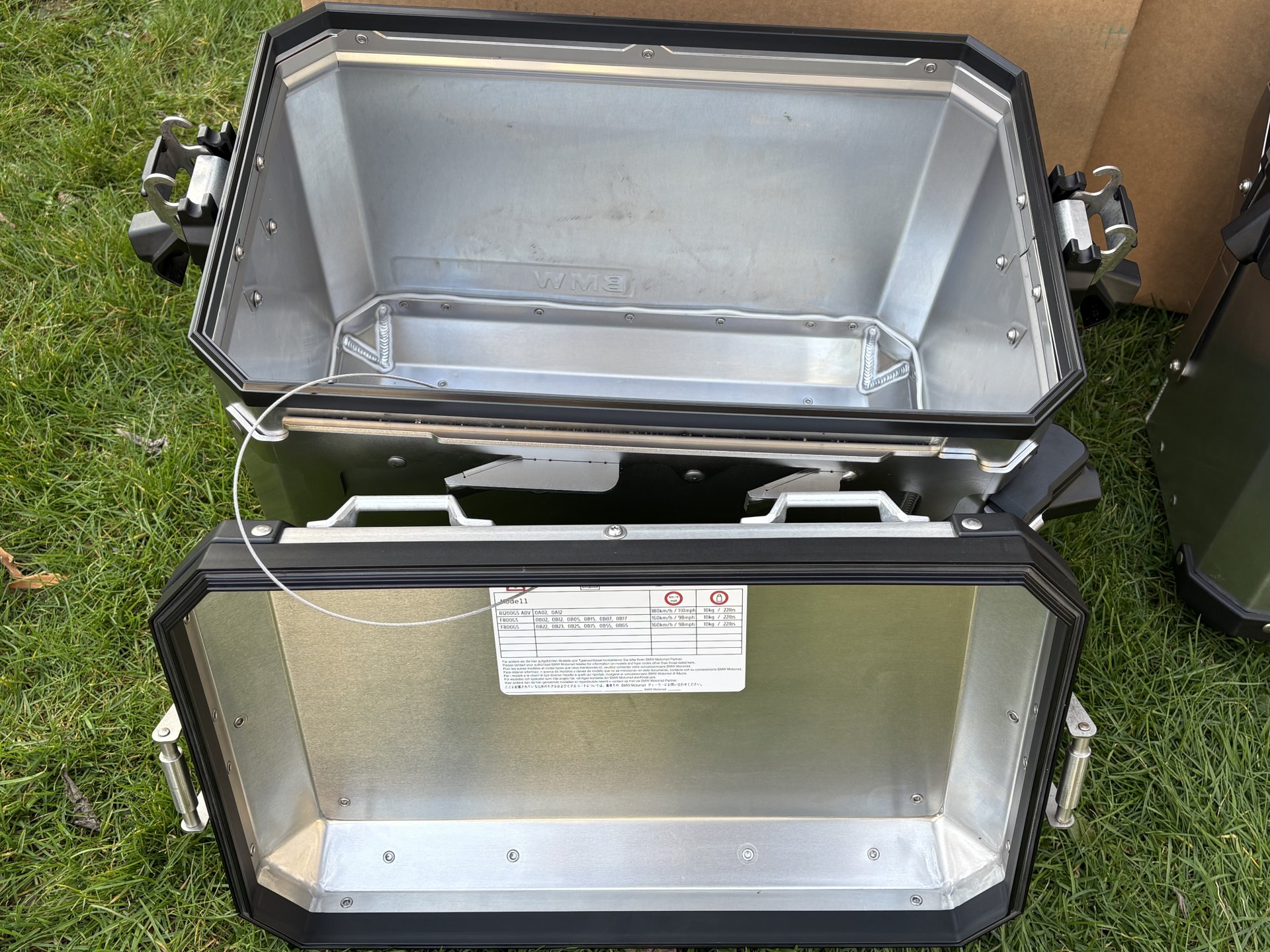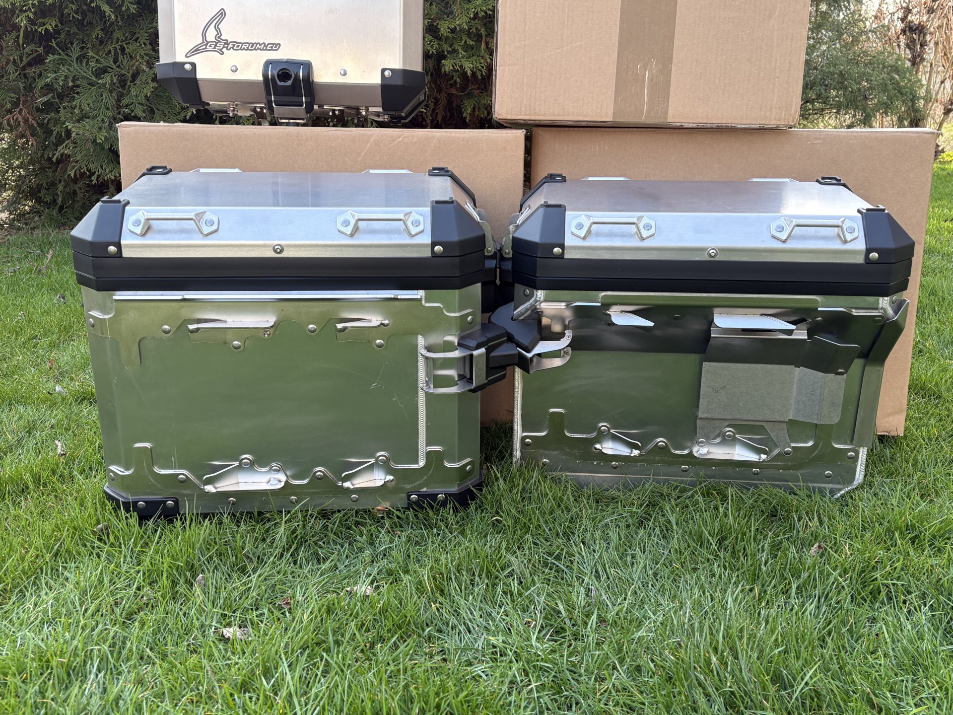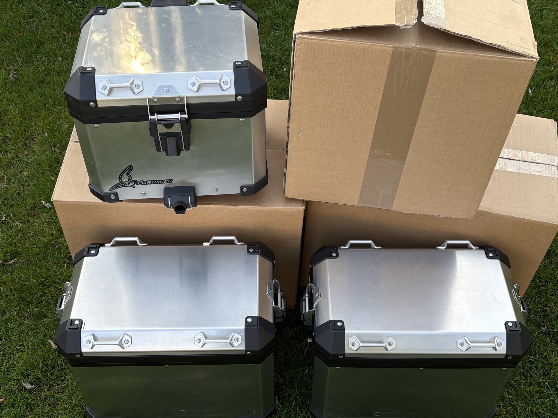 Verkaufe ein originales BMW 1200 1250 GS und Adventure Kofferset aus Aluminium. Das Topcase habe ich circa 8000 km auf dem Motorrad genutzt , die Seitenkoffer bei zwei Touren. Das Topcase hat das originale Rückenpolster. Mit dazu 6 neuwertige Schlösser zum codieren auf den eigenen Schlüssel.