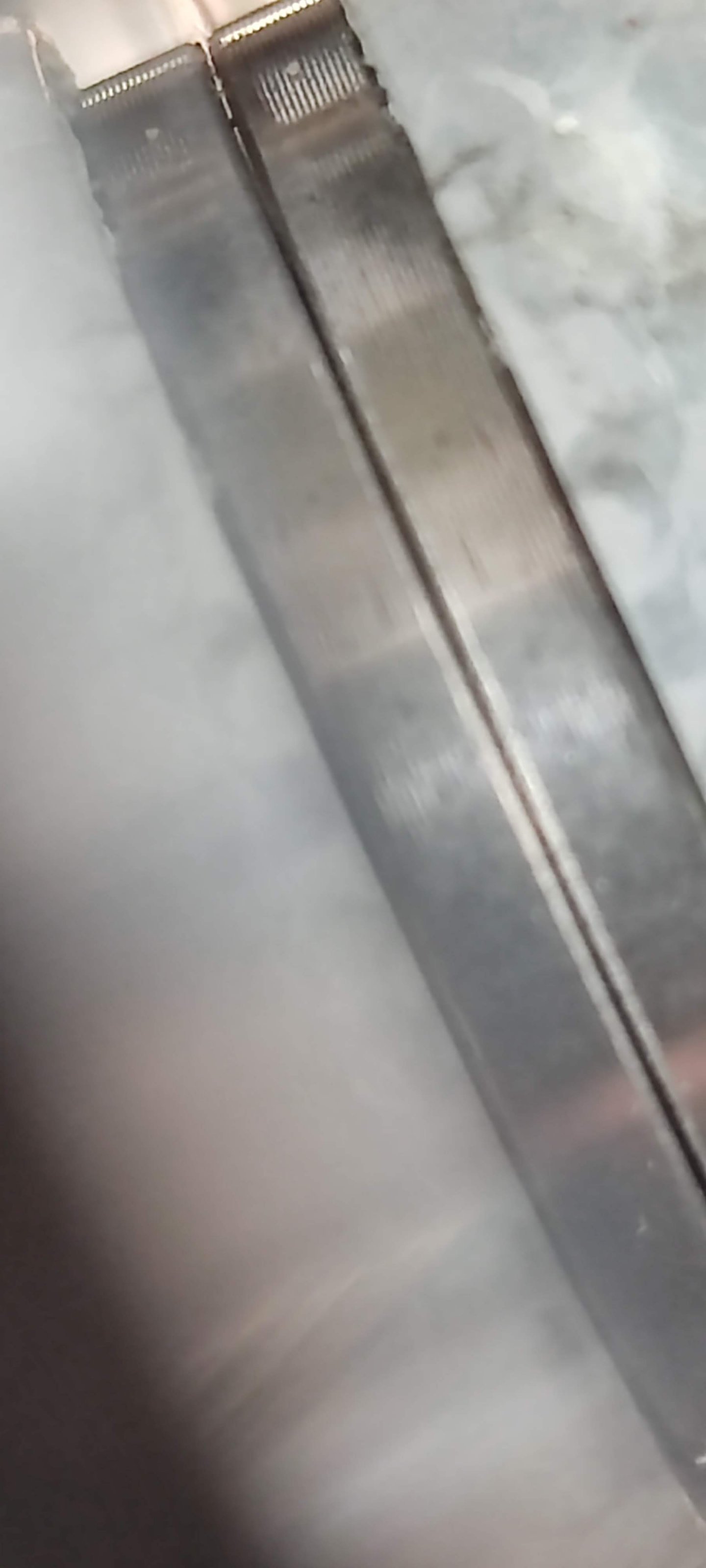 Anbei zwei Fotos. Einmal die Ansicht einer der Verschraubungen, wo man an der oberen Seite ein bißchen das Licht durch den Spalt sehen kann, danach noch eine Detailansicht.