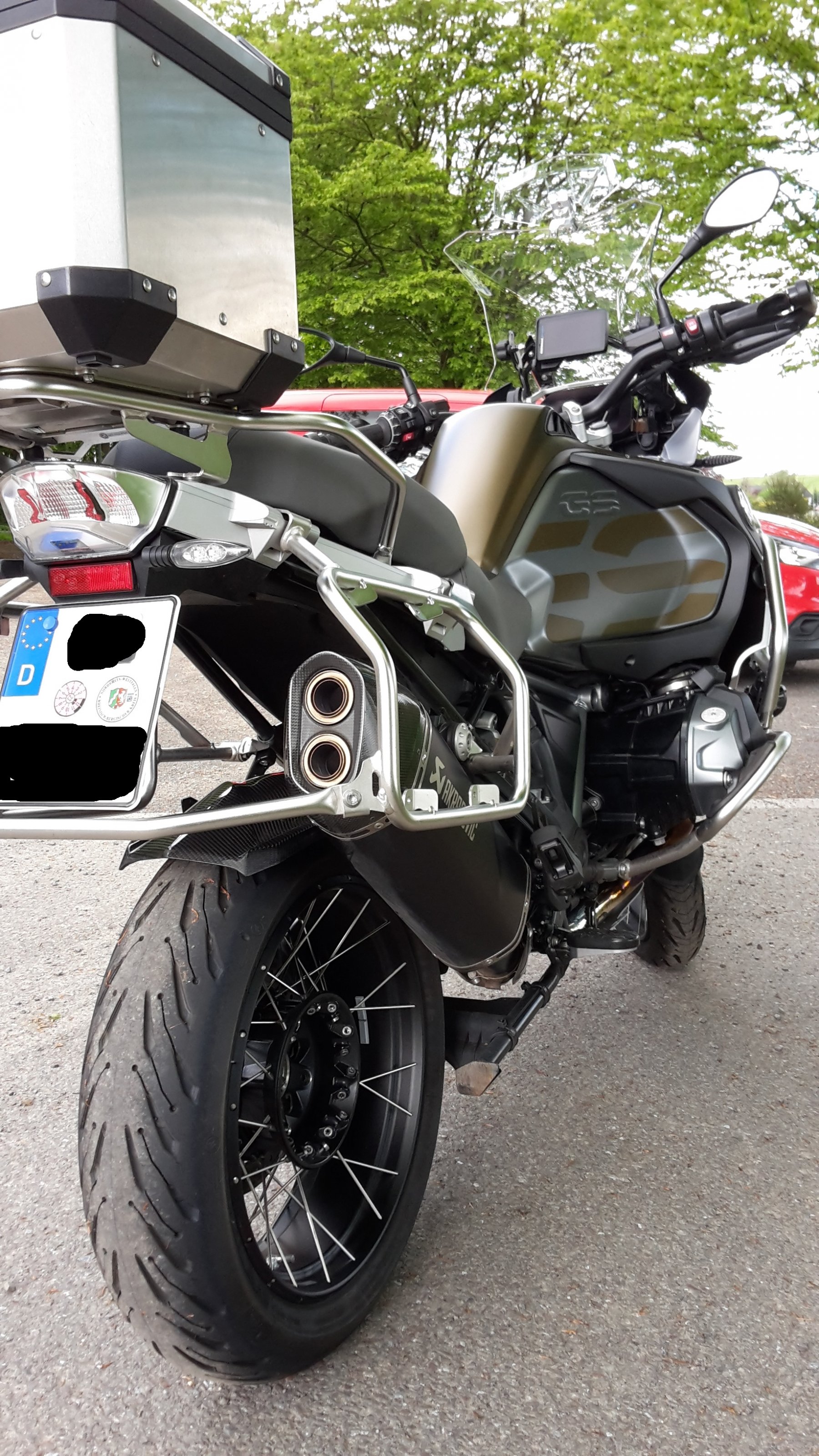 Ausstattung: Alle Pakete und SOS-Notruf. Schutzblechverländerung vorne, Kühlerschutzgitter und Rahmenschutz von BMW, Scheibenverstärkung und Spoileraufsatz von Wunderlich (sehr effektiv). Hinterradabdeckung in Carbon von Ilmberger, ersetzt den originalen Spritzschutz.