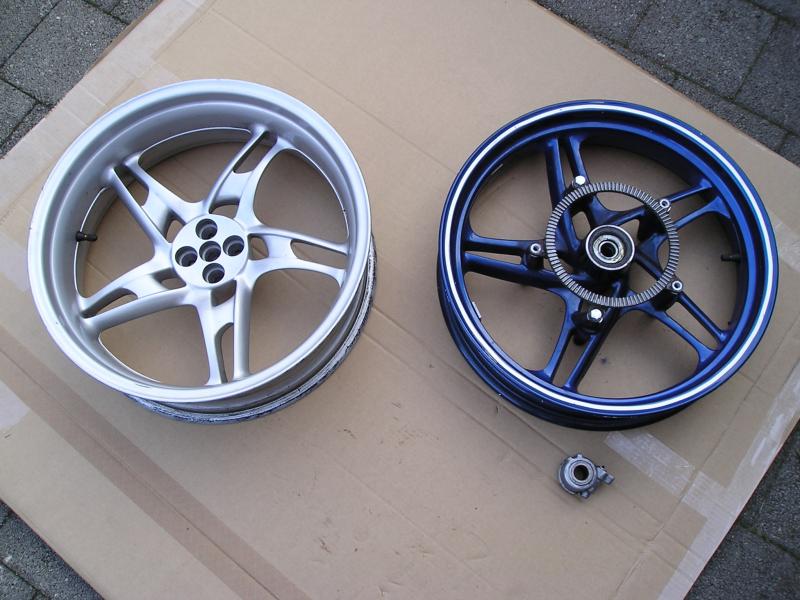 - 17" Radsatz, top-Rundlauf, vorne 3,5x17, hinten 5,5x17, inkl. ABS-Ring vorne und Tachoantrieb ---- € 600,-