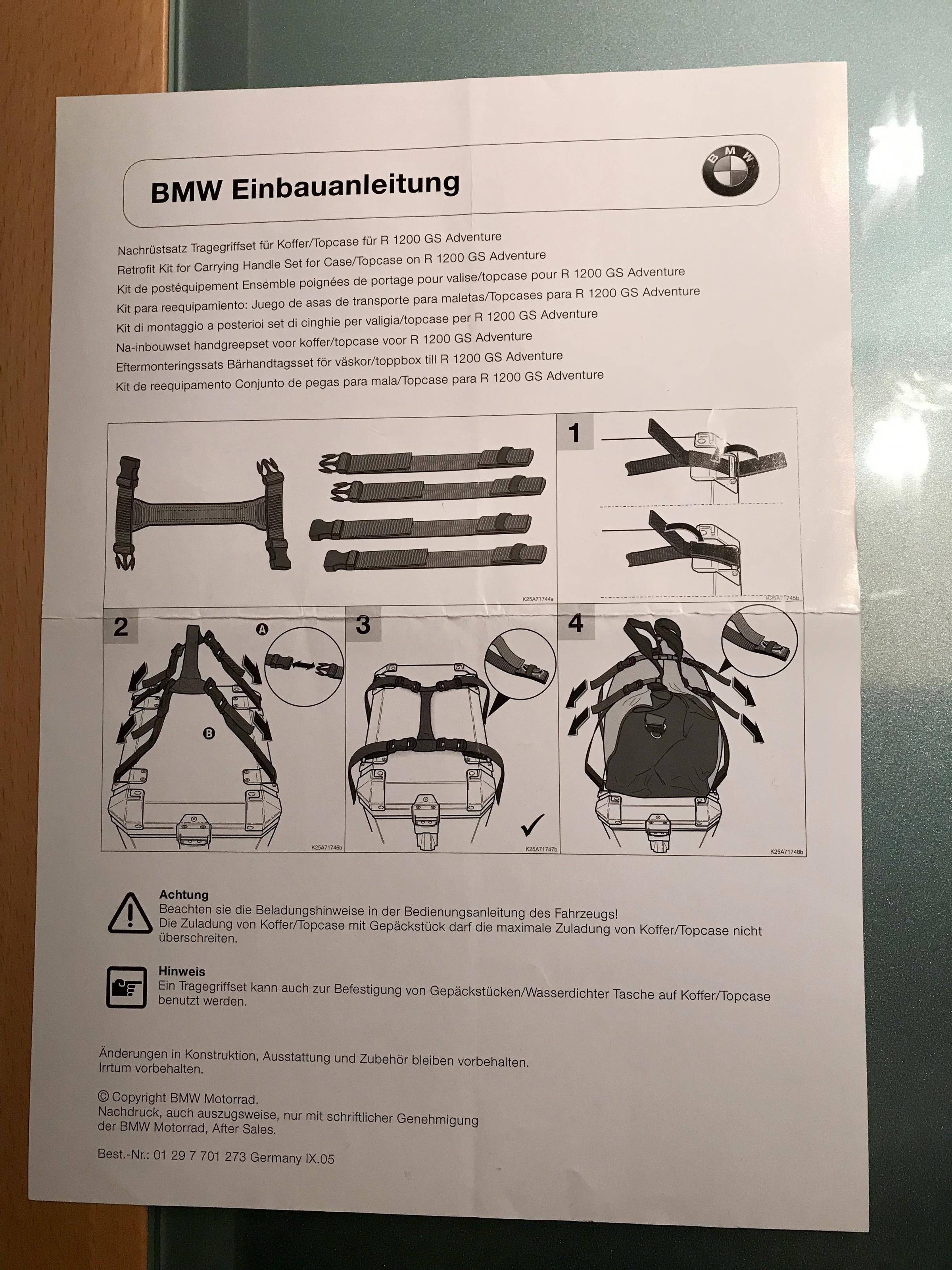 Tragegriff Tragegurt BMW R1200 GS Adventure Alu KofferHat jemand welche übrig und braucht sie nicht mehr ?