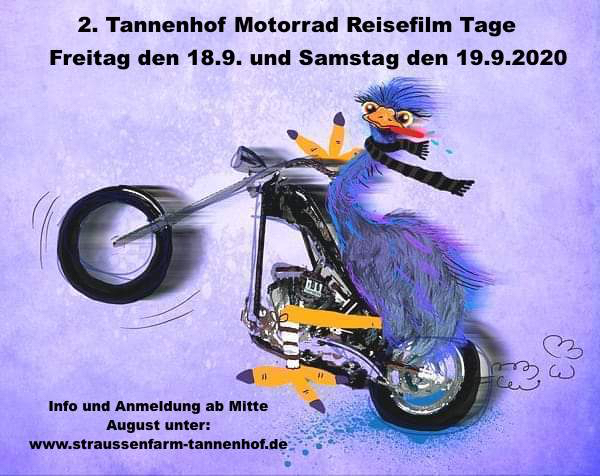 Wir haben beschlossen das wir bis Ende September das Event 2. Tannenhof Motorradreisefilme nachholen wollen.