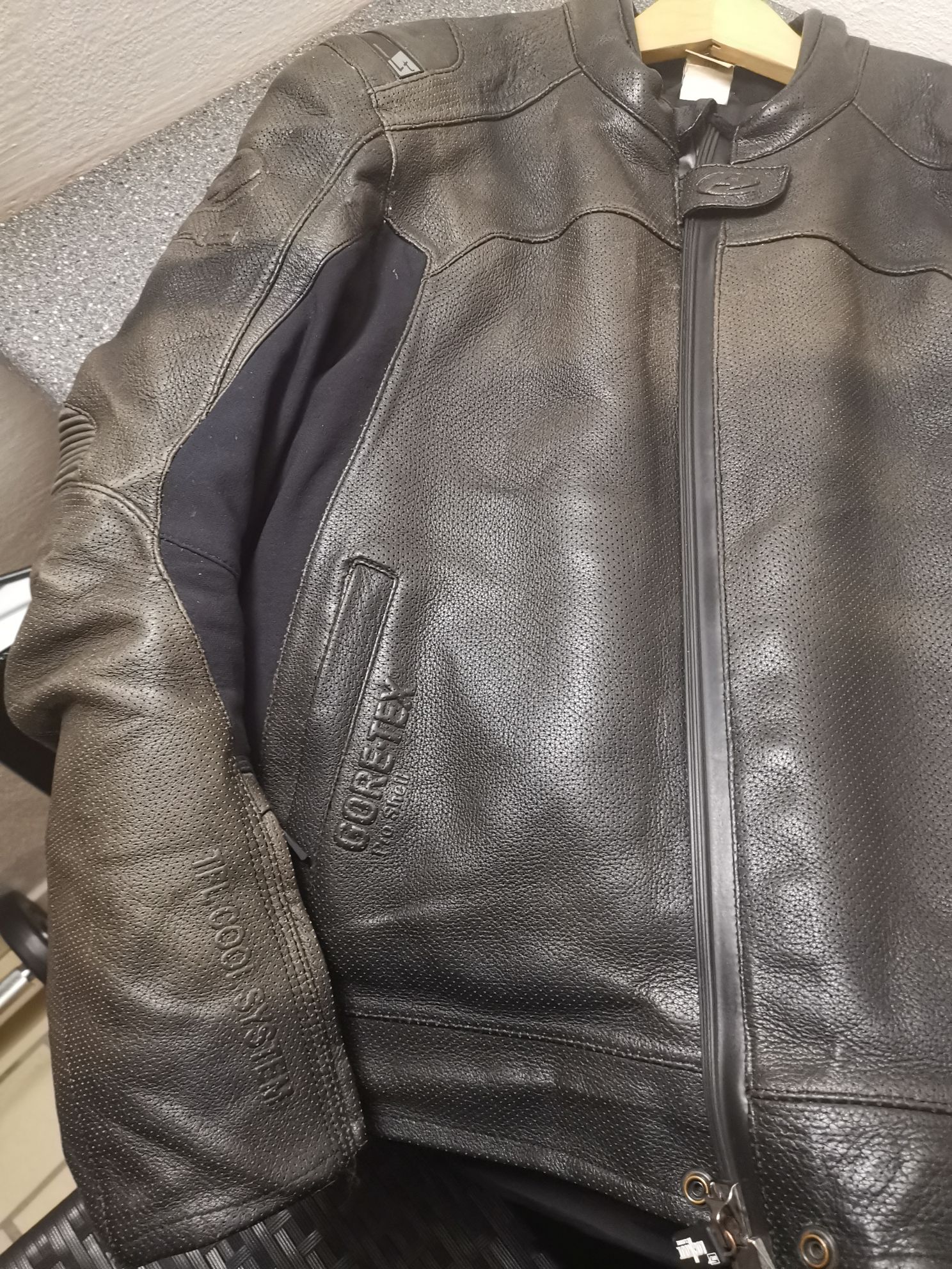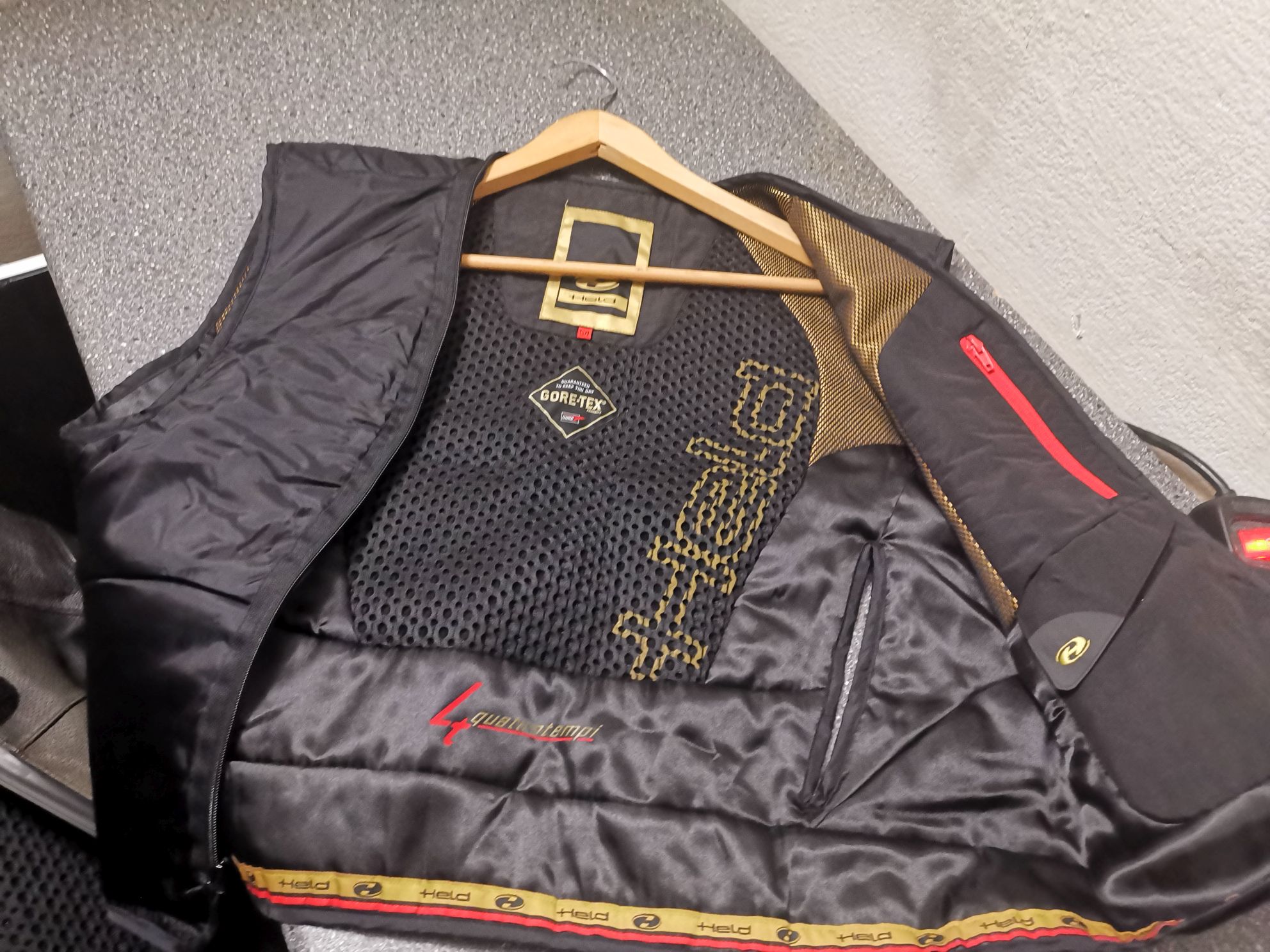 - Durch die Gore-Tex-Membrane ist die Kombi absolut wasserdicht, habe ich mehrfach ‚genießen‘ dürfen. Außerdem hat sie das ‚TFL-Cool-System‘, wodurch man auch im Sommer angenehme Trageeigenschaften hat.