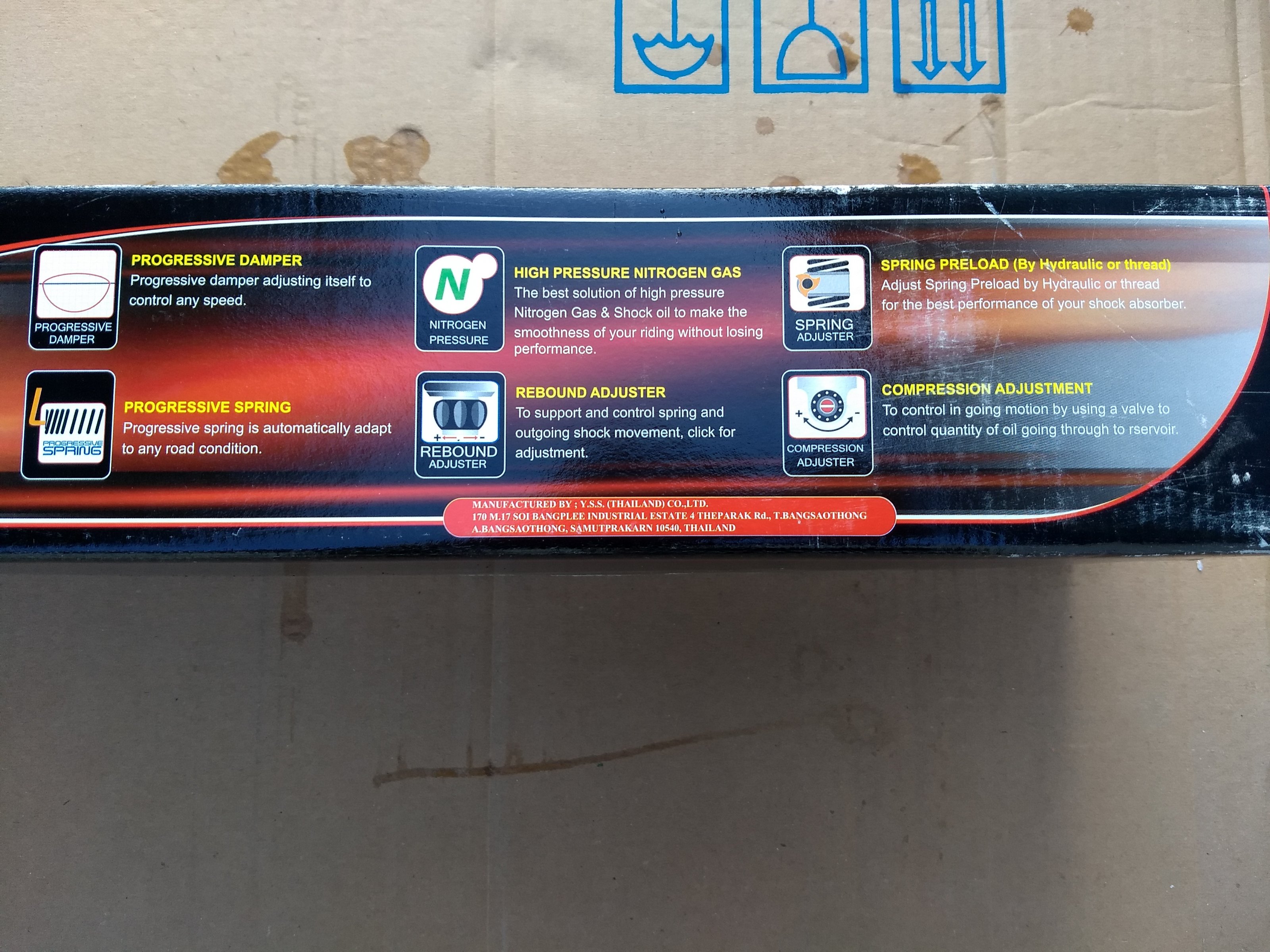 The YSS suspension is in a very good condition and completely functional. I've bought the suspension because it has adjustable length (plus/minus 5mm) so you can raise the rear and compensate the front lift caused by the 21" wheel and spacers.