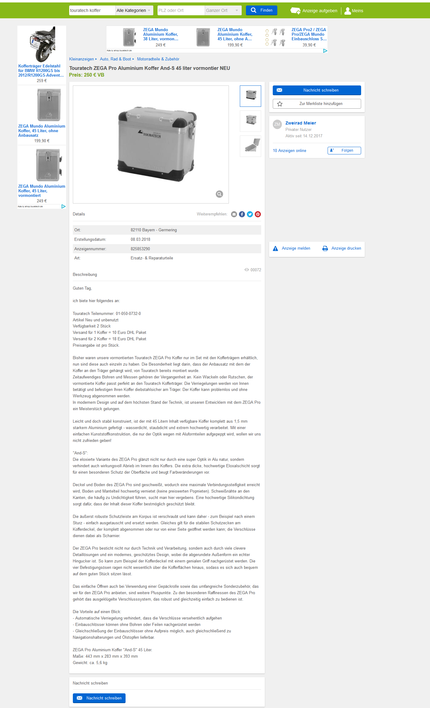 Bisher waren unsere vormontierten Touratech ZEGA Pro Koffer nur im Set mit den Kofferträgern erhältlich, nun sind diese auch einzeln zu haben. Die Besonderheit liegt darin, dass der Anbausatz mit dem der Koffer an den Träger gehängt wird, von Touratech bereits montiert wurde.