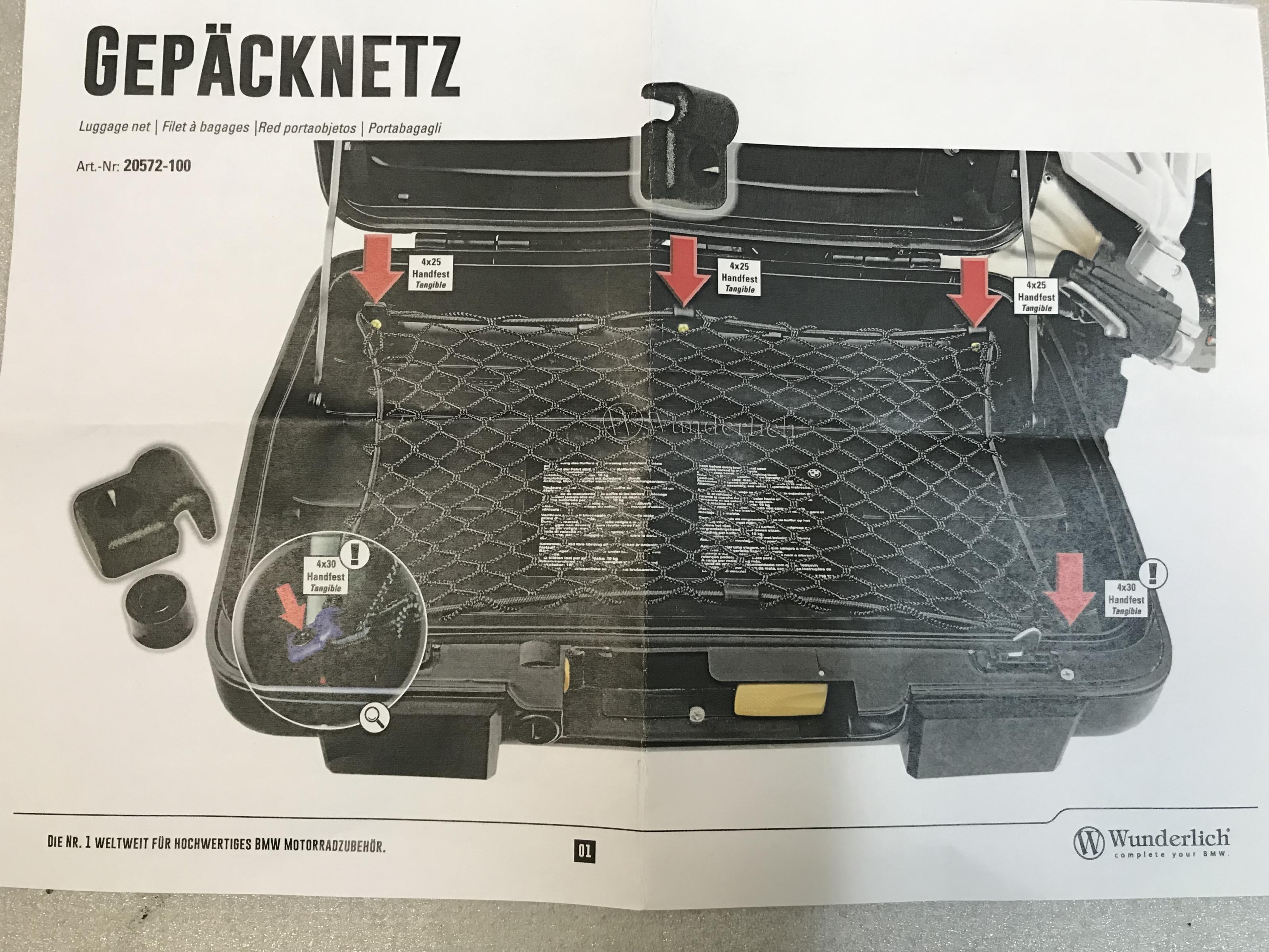 Diese 3 Gepäcknetze sind von der Fa. Wunderlich und werden in den Deckeln montiert.