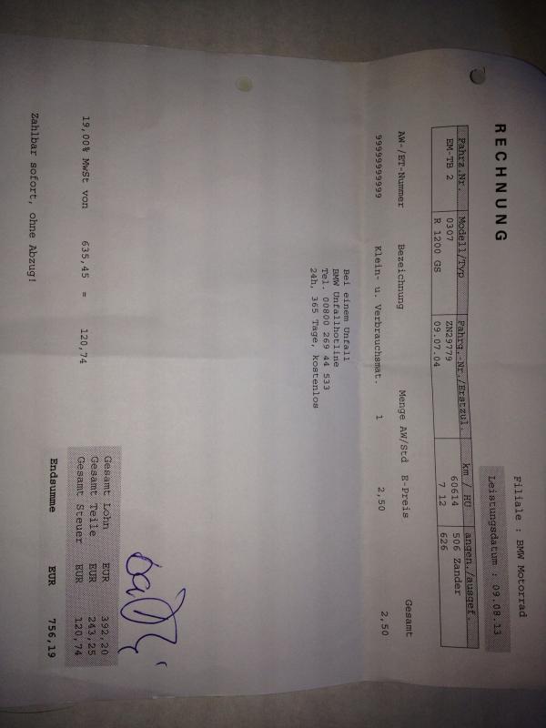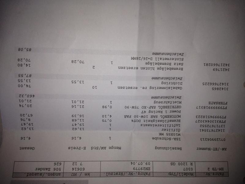 für meine 06er ADV für 60000er und Pflegedienst inkl. Bremsflüssigkeit (BKV) im Steuerkreis und Vorderradkreis für 400€ inkl Steuer.