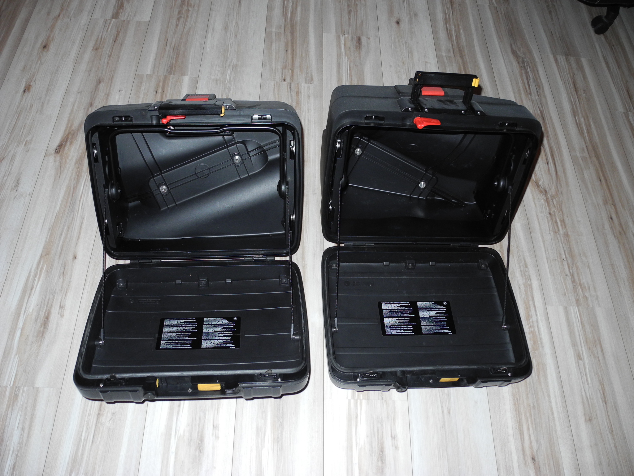 Die Kofferhalter sind, ich glaube, 1,5 Jahre alt, waren zwar die ganze Zeit montiert, wurden nur 2-3 Mal benutzt und sind frei von Gebrauchsspuren. Die Schließzylinder können umcodiert werden.