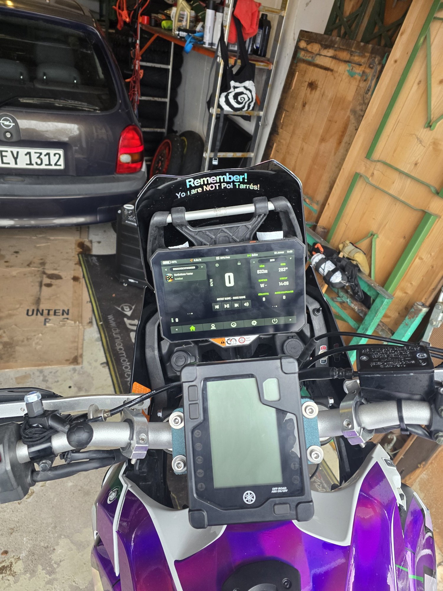 Der billo Bluetooth OBD Adapter funktioniert auch mit DMD2, heißt ich werde auch kein größeres Problem damit haben, wenn das Tablet den Tacho teilweise verdeckt, weil Drehzahl etc vom Tablet angezeigt werden kann.