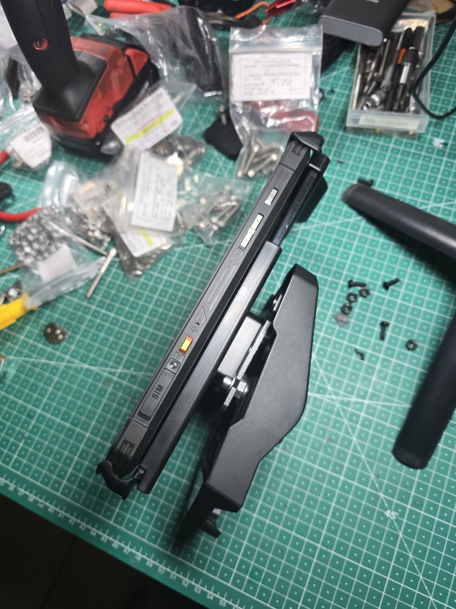 Einen Halter hab ich bei Ali auch bestellt, aber da das Tablet hinten Gewinde drin hat, werde ich versuchen, was in CAD zu konstruieren, dass ich das Ding direkt an die Navi Stange der Yamaha montieren kann. Schön wäre, wenn ich es schnell abnehmen könnte, da rattert es noch im Kopf, wie ich das mache. Es muss natürlich fest sein, aber wäre schön, wenn es sich mit einer Hand einfach lösen könnte. Einen Rahmen drum hätte ich auch nur ungern, eben wegen der Gewinde direkt im Tablet.
