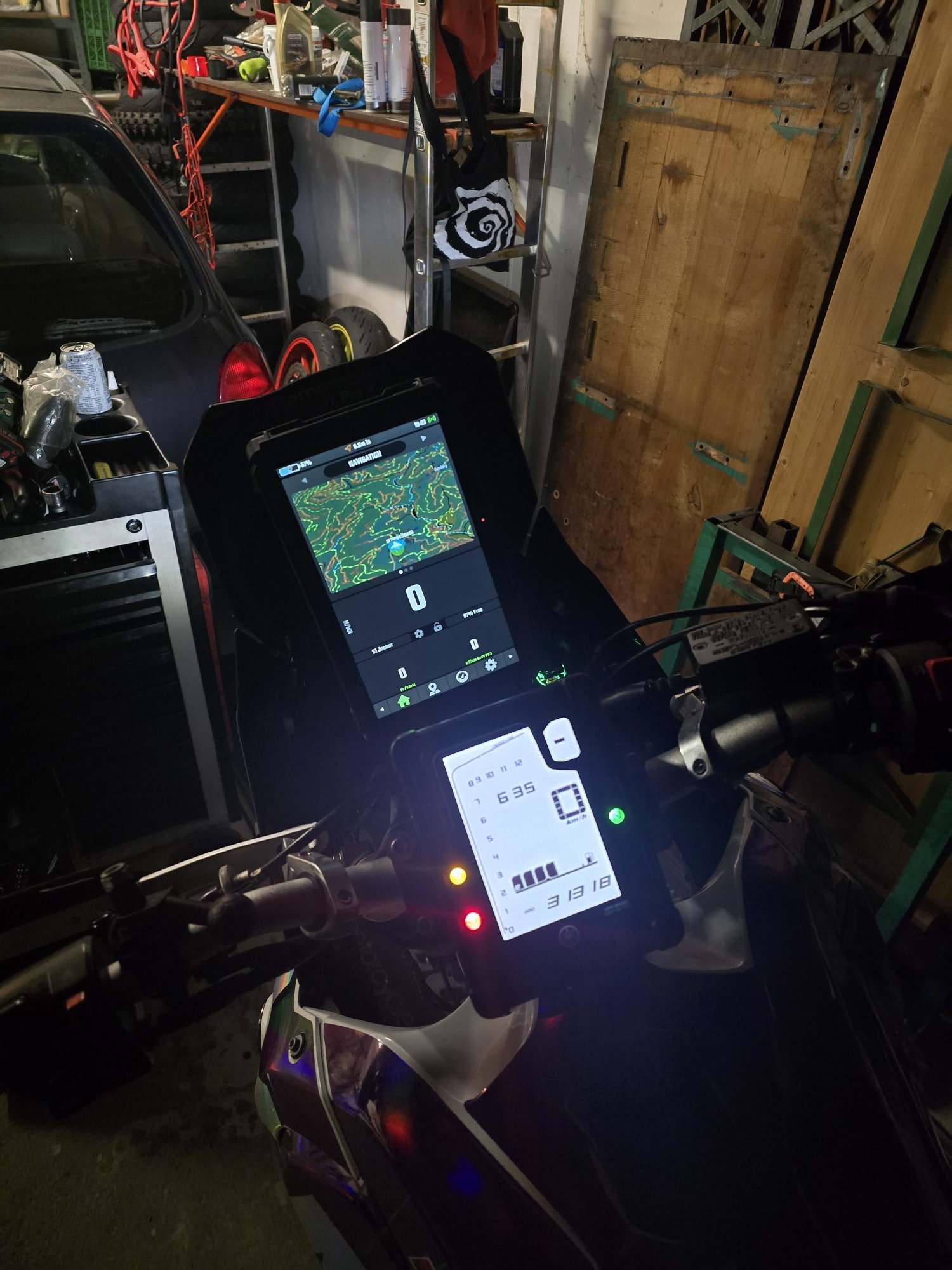 Aktuell habe ich noch ein Android Auto Display am Motorrad, das funktioniert an sich gut. Sieht top aus, läuft flüssig, alle Apps die ich brauche laufen gut. Sind im Prinzip Spotify, Google Maps und kurviger. Was mich da aber enorm nervt, ist dass der Akku vom Handy massiv leer gesaugt wird. Das ging mir letztes Jahr auf den Sack, dass ich das Handy quasi dauerhaft mit einer Powerbank in der Tasche laden musste, das Ding wird auch fucking heiß in der Jackeninnentasche...