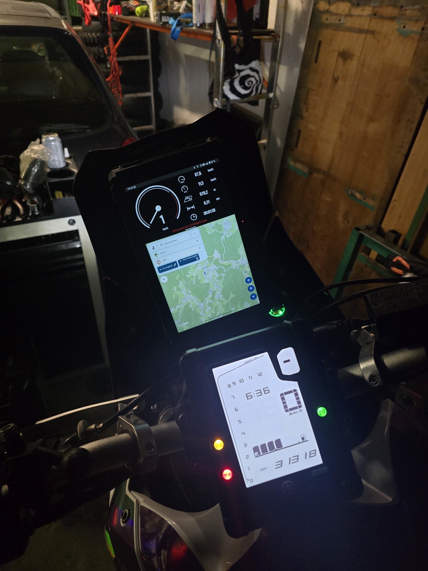 Wenn das alles so klappt, wie ich mir das vorstelle, drucke ich mir noch den Adapter, um den Tacho auf den Lenker zu versetzen, dann ist mehr als genug Platz für das Tablet da, wo der Tacho normalerweise sitzt.
