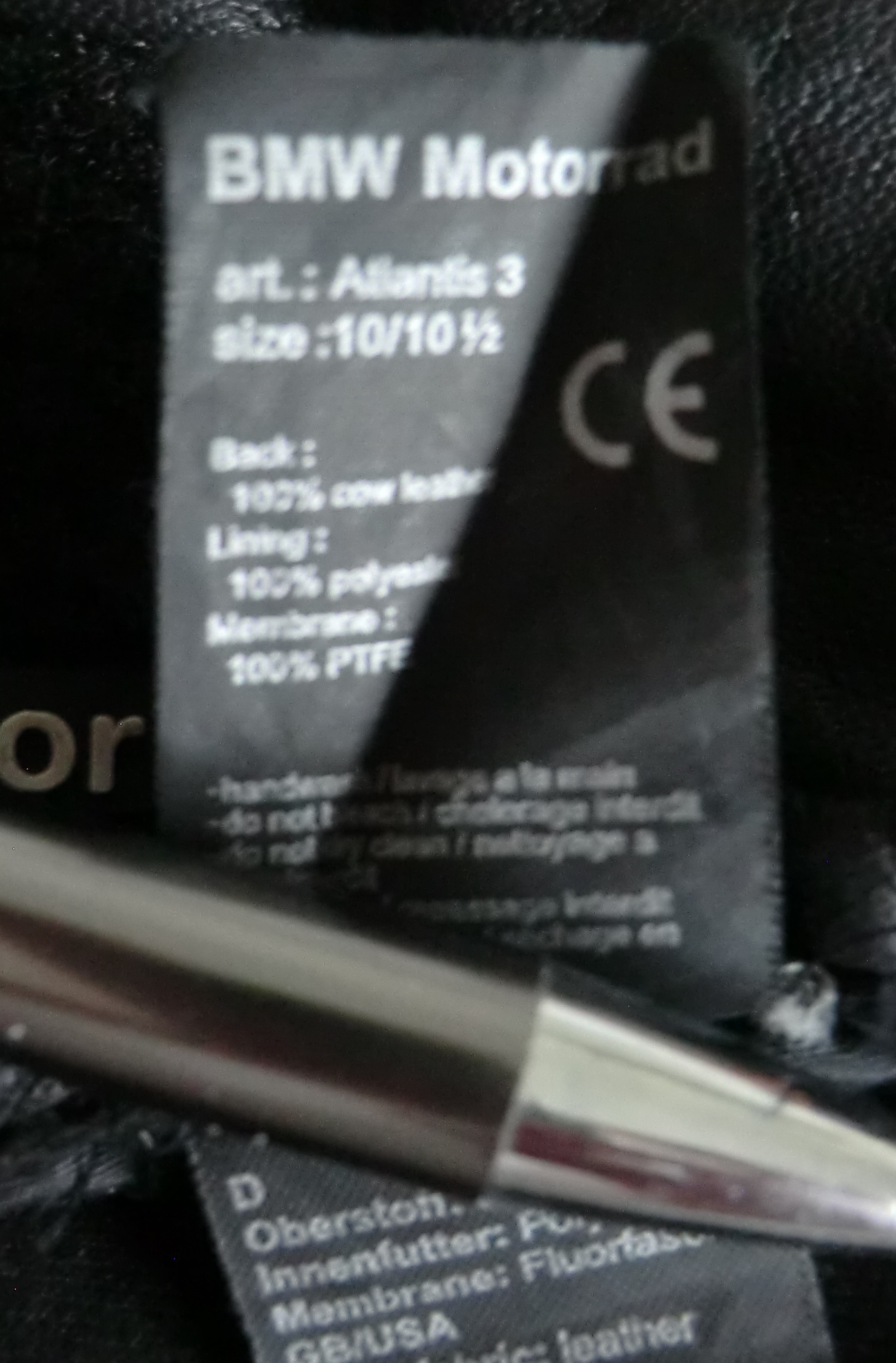Die Handschuhe von BMW z.B. GS Dry oder Atlantis 3 haben ein CE jedoch ohne die Abbildung eines Motorrades wie in dem Bericht.