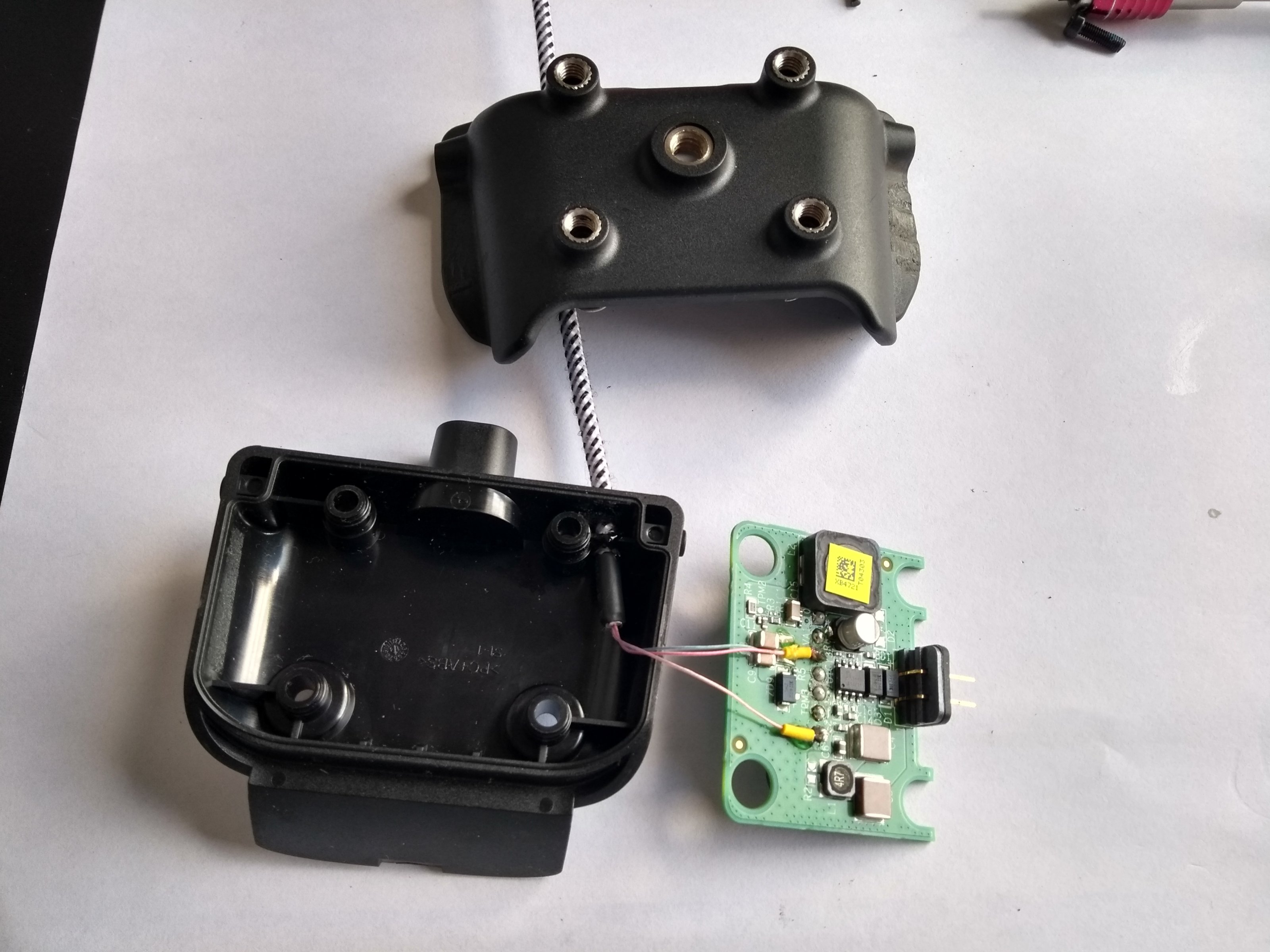 Da der TomTom Rider 2013 die Sprachausgabe über die Pins bei der Autohalterung ausgibt, nutze ich genau diese Pins für mein externen BT-Sender.