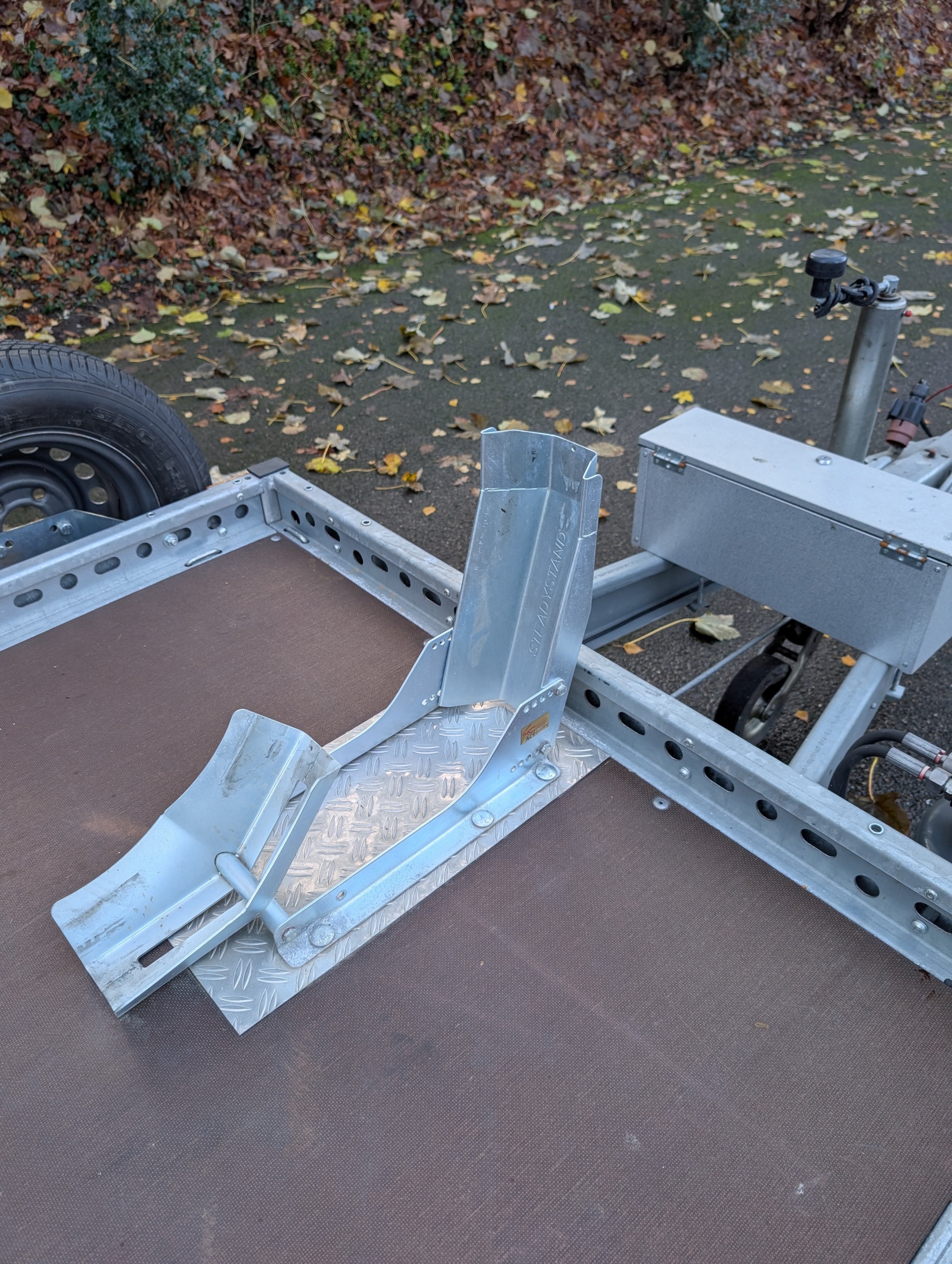 Fest montierte Radwippe von ACEBIKE zur sicheren Fixierung des Motorradvorderreifens (Sonderzubehör)