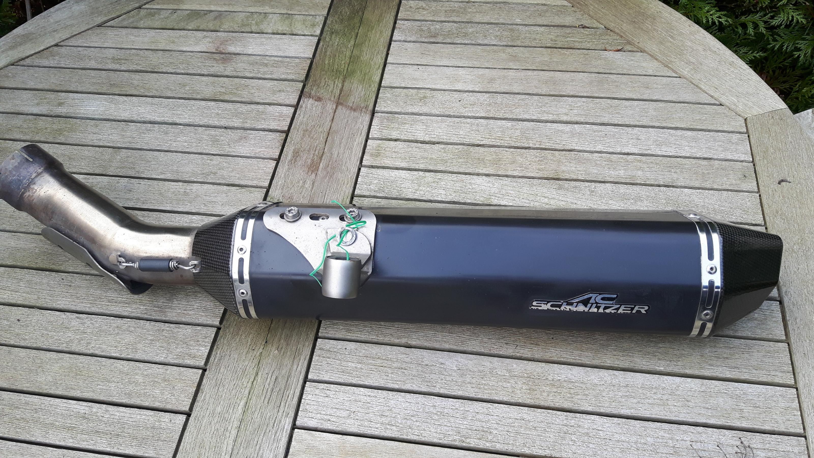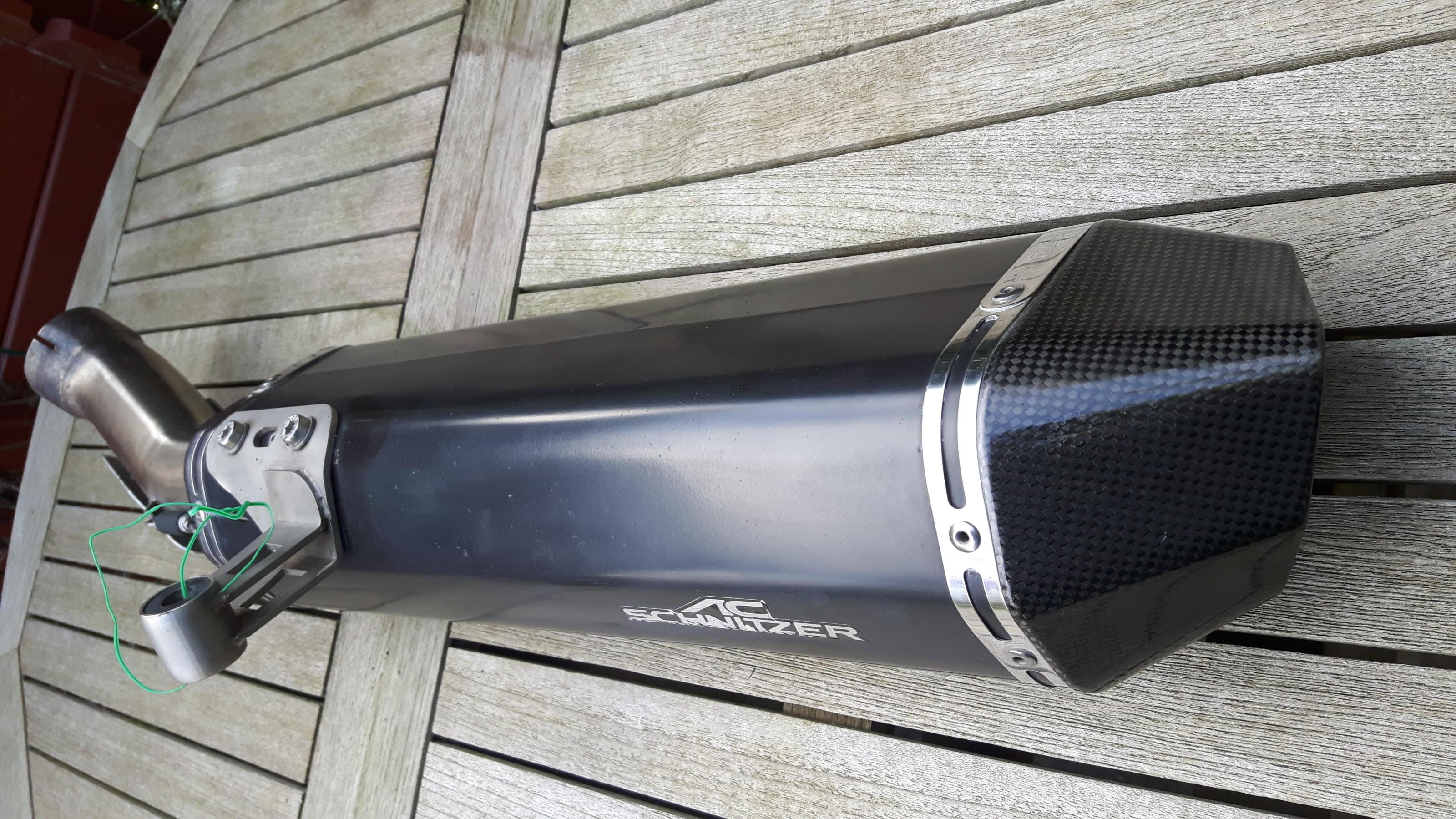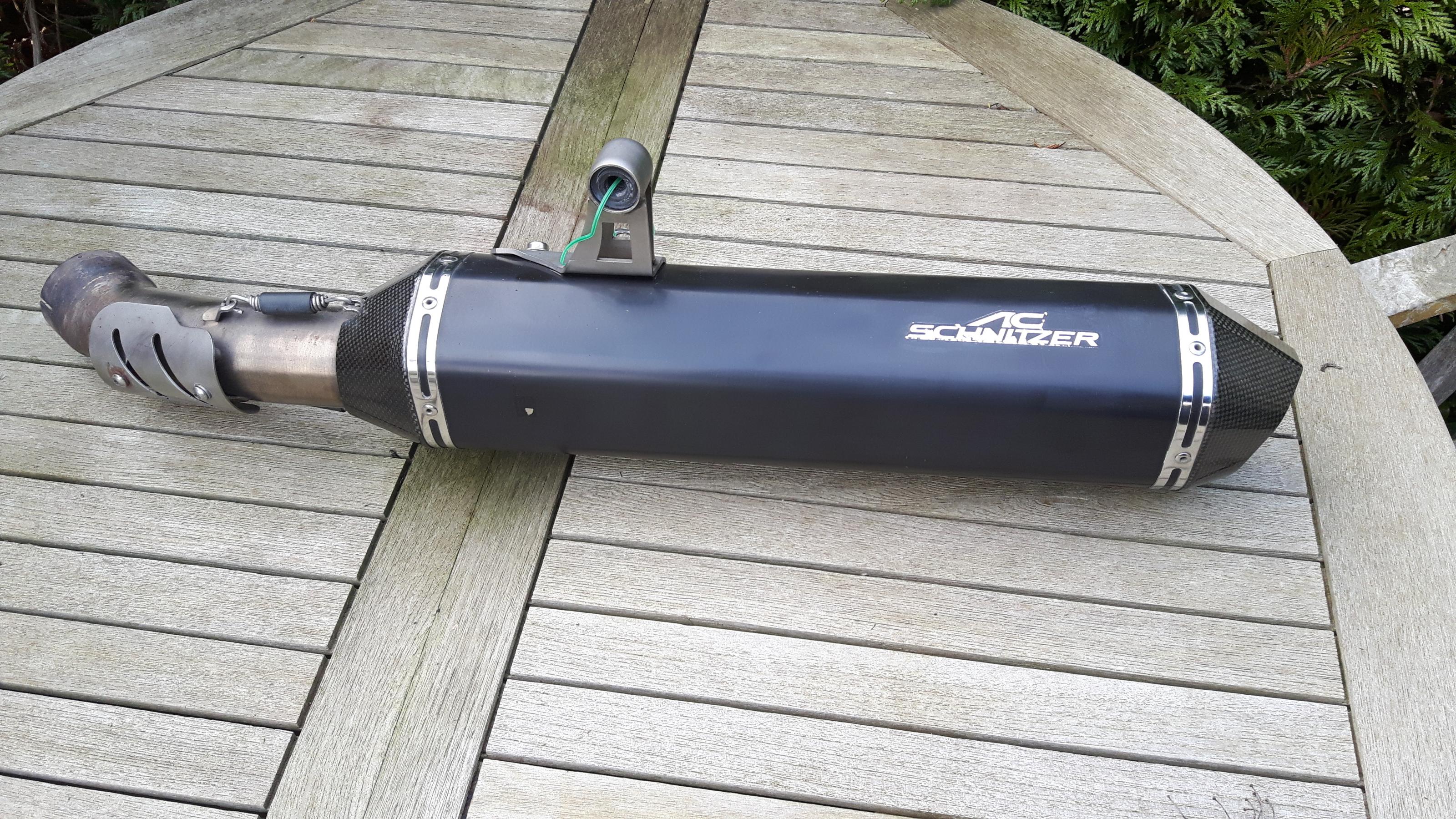 Zum Verkauf steht eine ESD von AC Schnitzer. Die Anlage weist ein paar Gebrauchspuren auf. Auf der größeren Stelle hatte ich ein Stück schwarzes Klebeband drauf . Um die Größe zu dokumentieren habe ich 1 Cent daneben gepackt. E Nummer vorhanden.