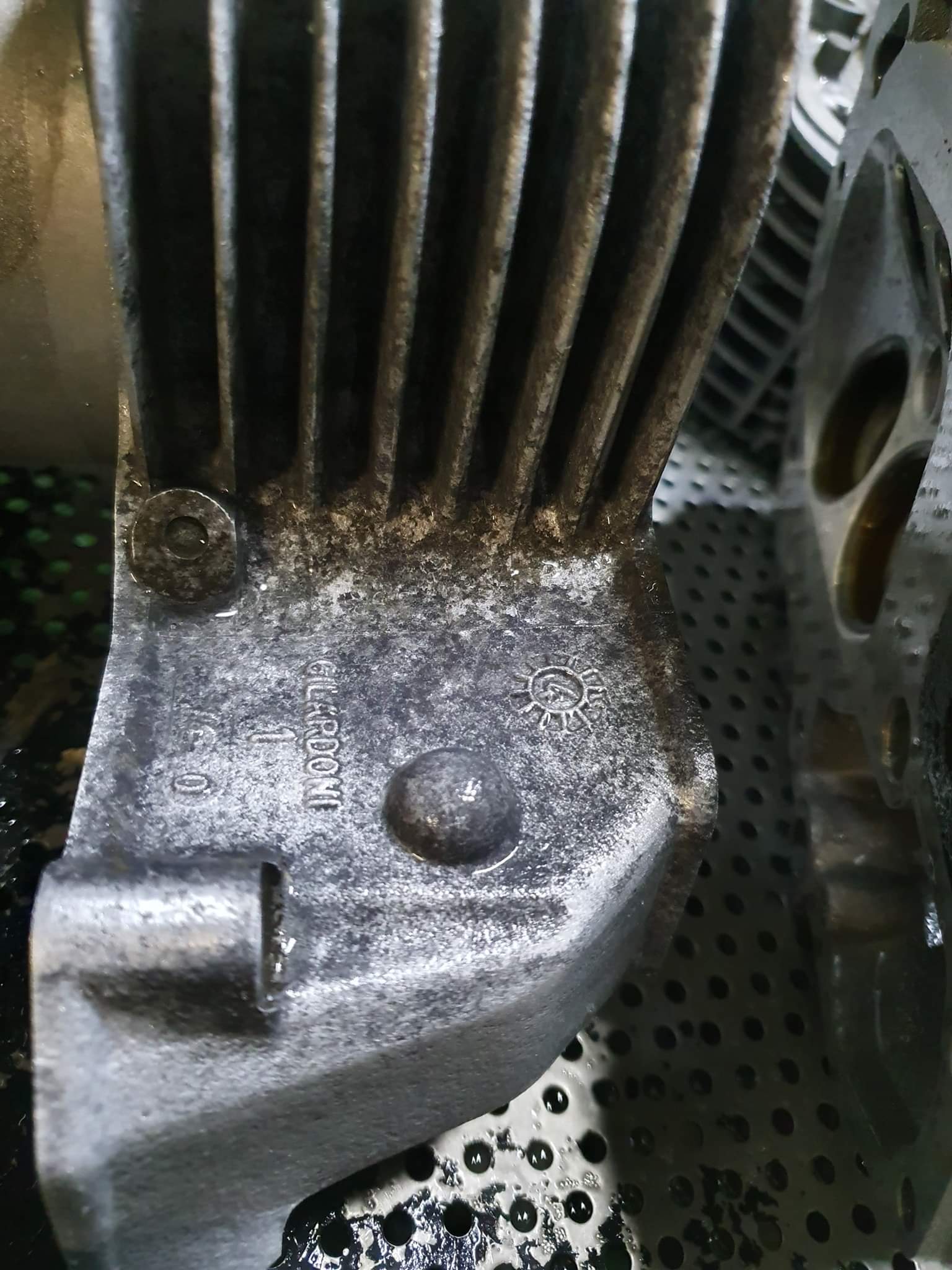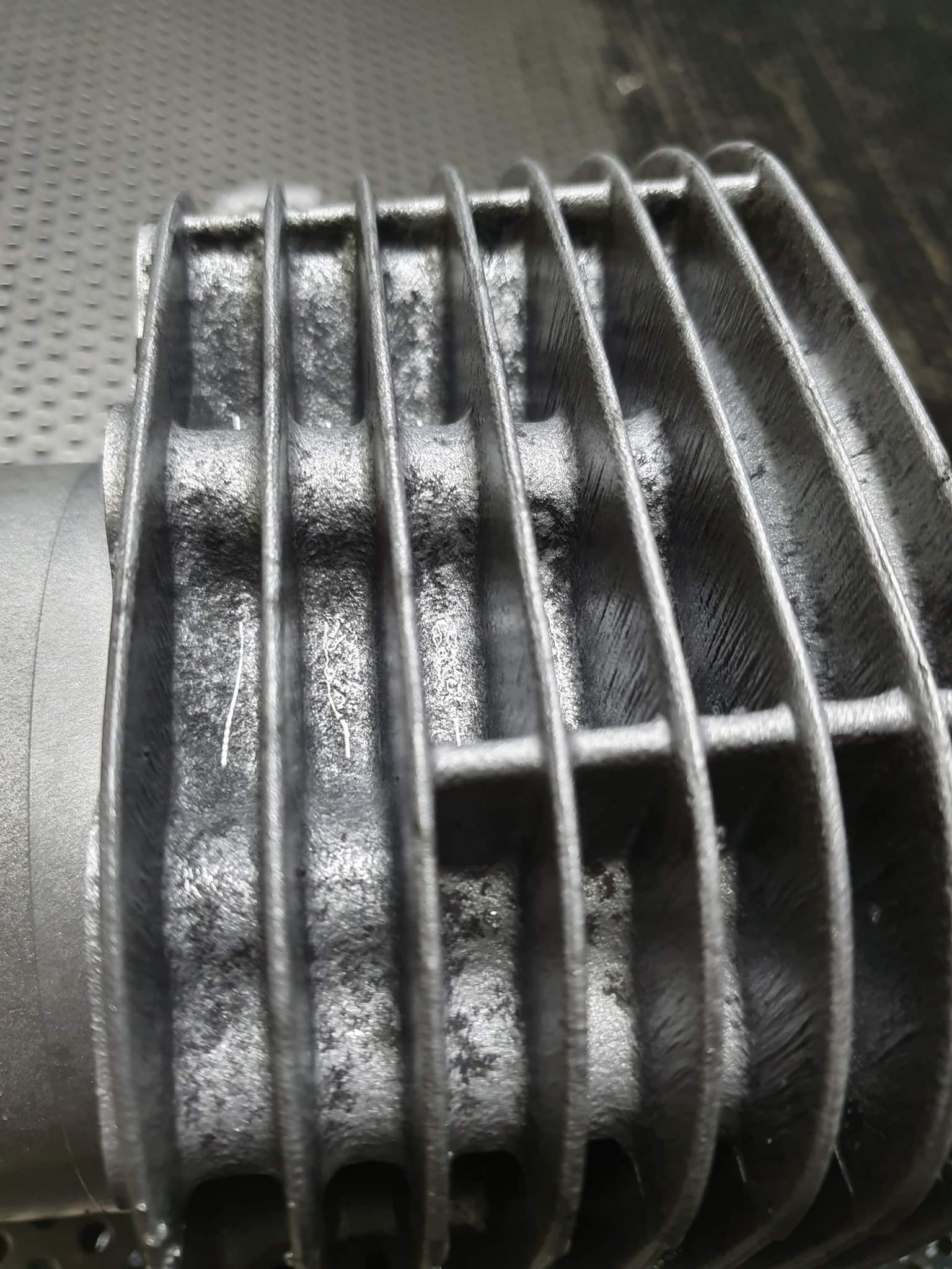ich lasse gerade Zylinder und Zylinderkoepfe Vapor-Blasting - dann wird das Aluminium wie neu! Dabei haben wir festgestellt, dass die Teile anscheinend vorher silber beschichtet (powdercoated) waren. War das im Bj. 2004 ab Werk so, oder hat da ein Vorbesitzer gebastelt? Die Beschichtung blaettert an den Kanten ein wenig, ist also klar zu erkennen, dass es sich tatsaechlich um eine Beschichtung handelt.
