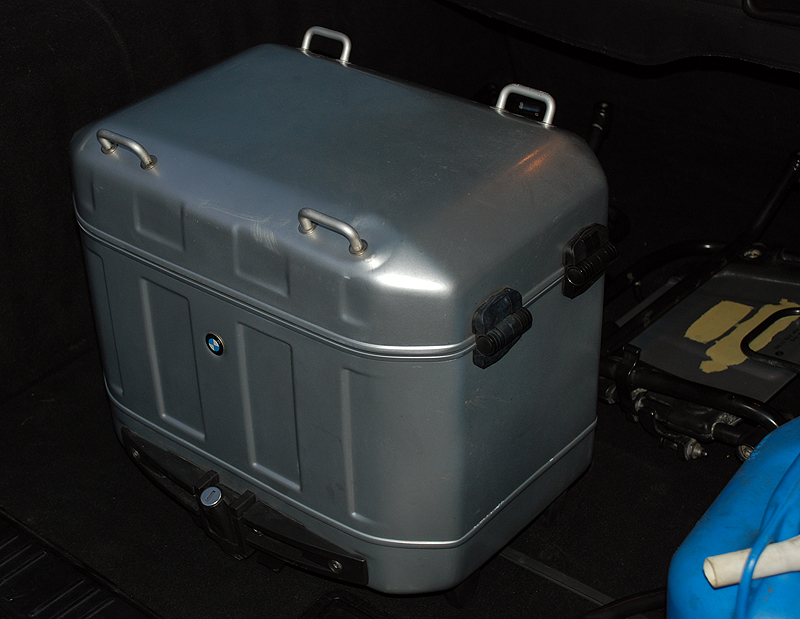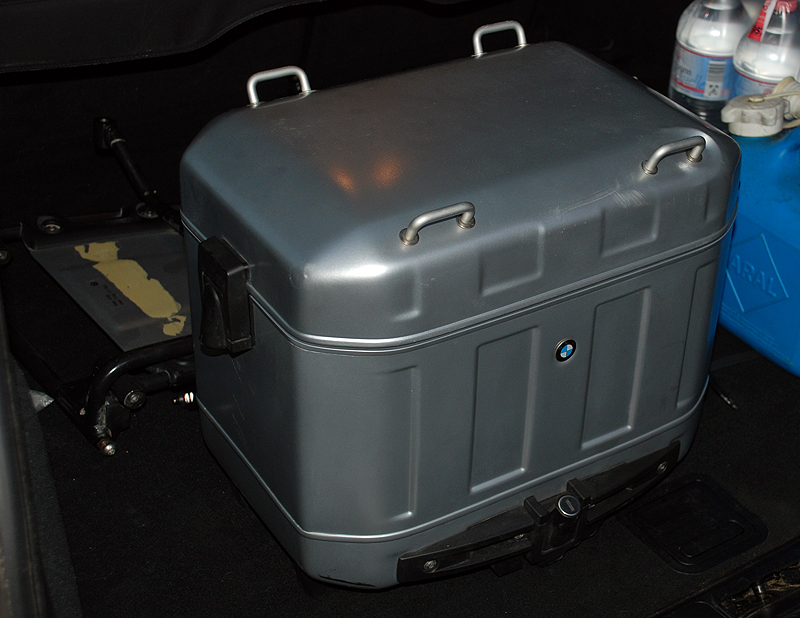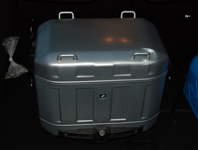 Kompletter Adventure-Kofferträger-Satz (incl. Schrauben) und der rechte Koffer (mit Schlüssel).