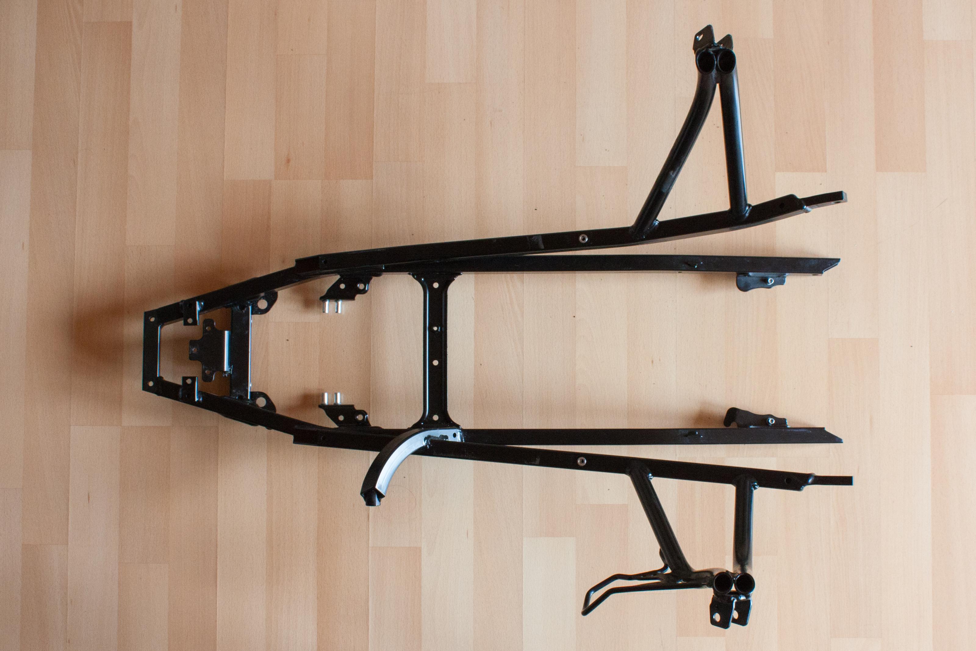 • Heckrahmen; Zustand: untere Strebe nach innen leicht verzogen, Fußrastenaufnahme verbogen; Art.-Nr.: 46518523352; NP: 746,30 €