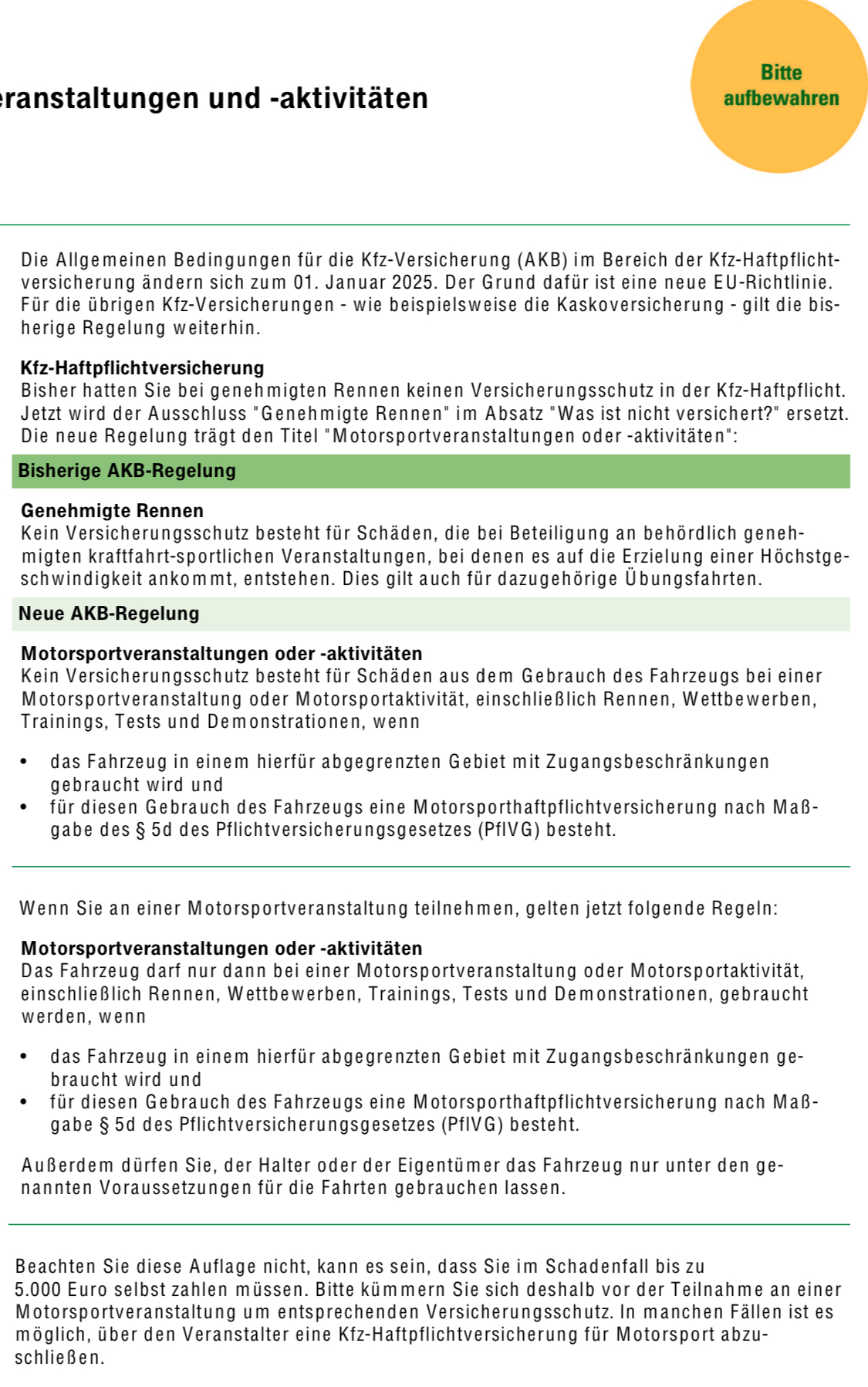 [...] ersetzen wir in den AKB den Risikoausschluss von Motorsportveranstaltungen in der Kfz-Haftpflichtversicherung: