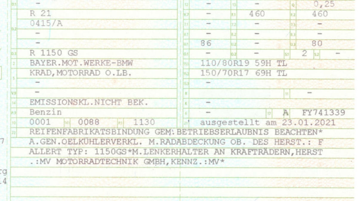 Ein Forumskollege hatte vor kurzem hier festgestellt, dass die Behörde für seine 1150er falsche Papiere ausgestellt hatte.