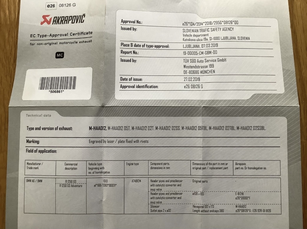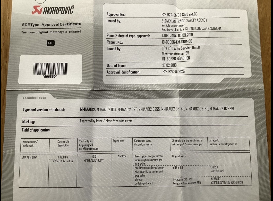 Ich habe den Akra (nur kurz) auf einer 1250er von 2019 genutzt.