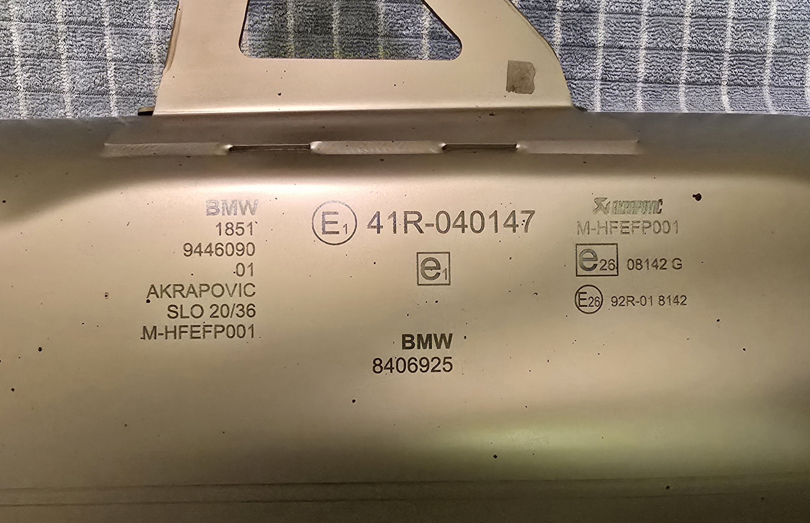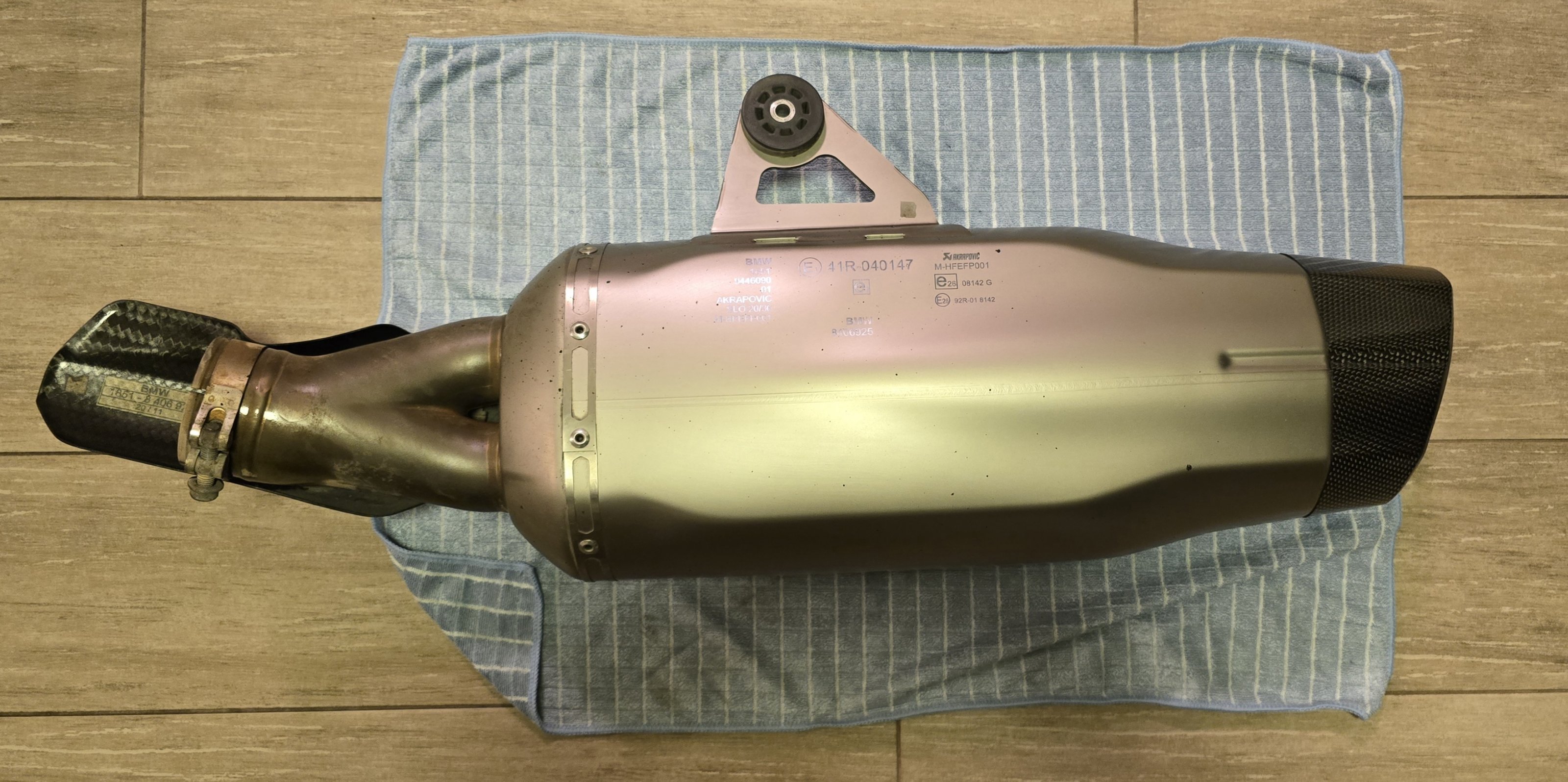 Es handelt sich hierbei um den originale BMW Akrapovic mit Euro 4&5 Zulassung (Code M-HFEFP001). Siehe auch Akrapovič vs. HP