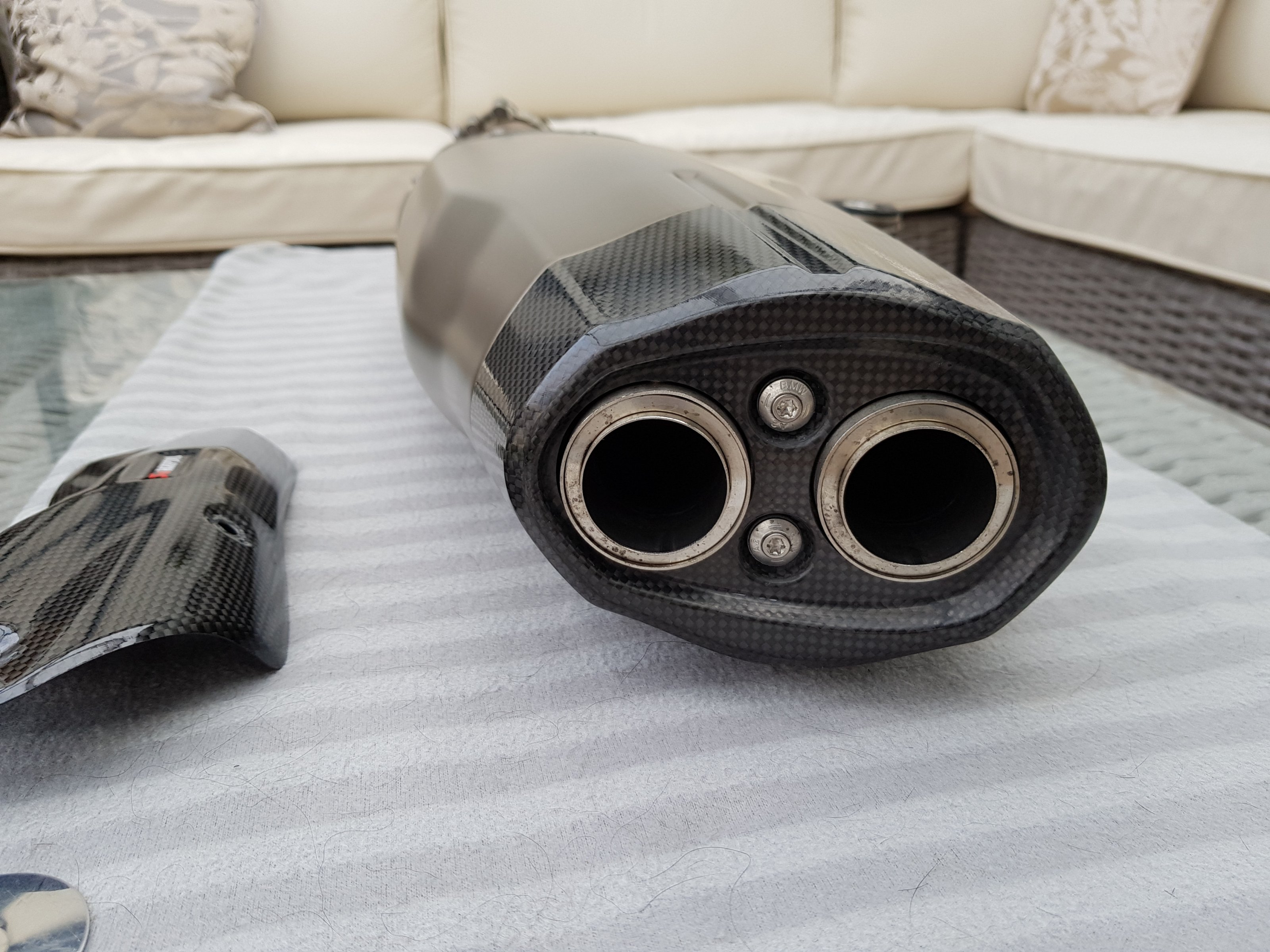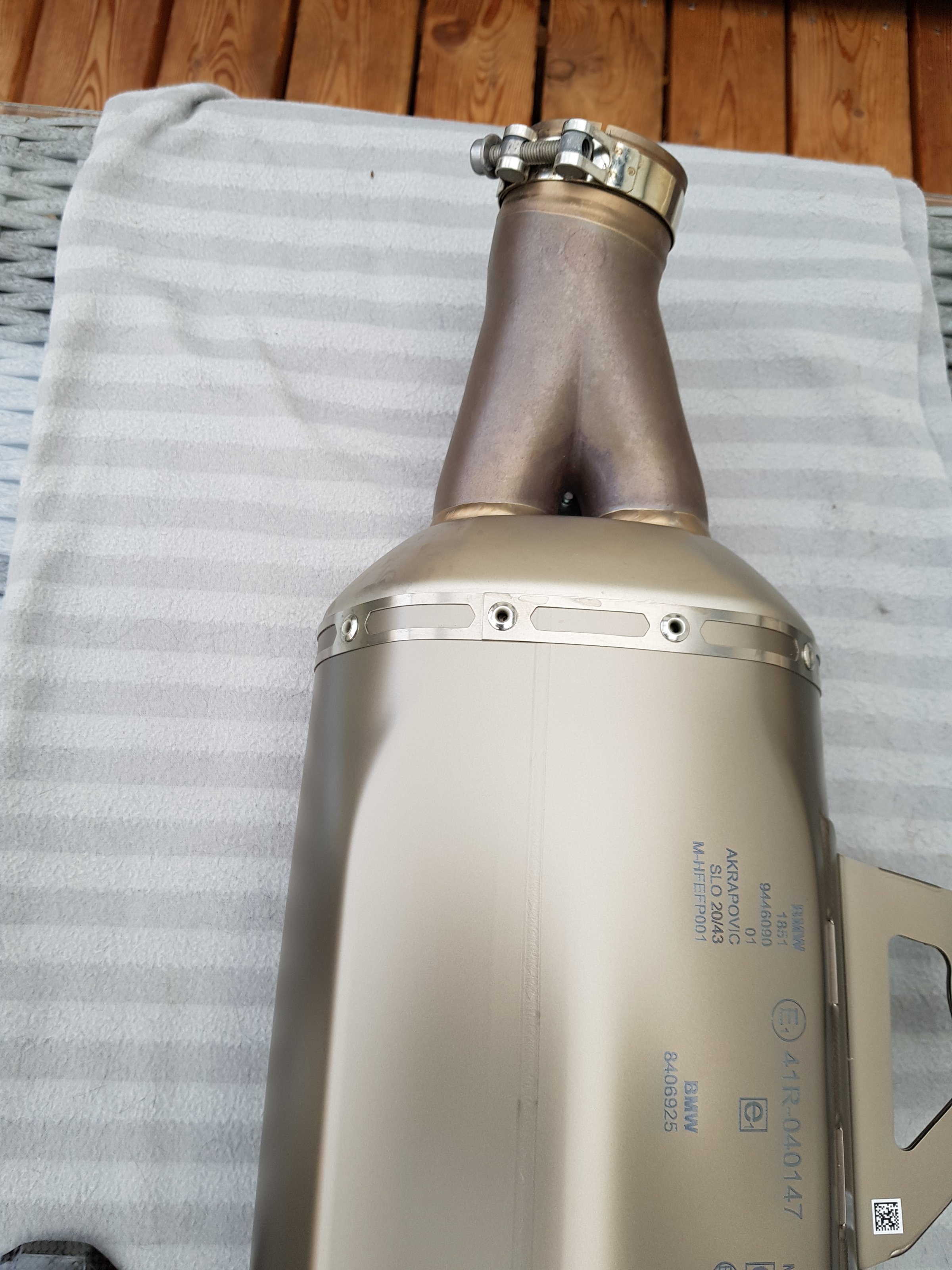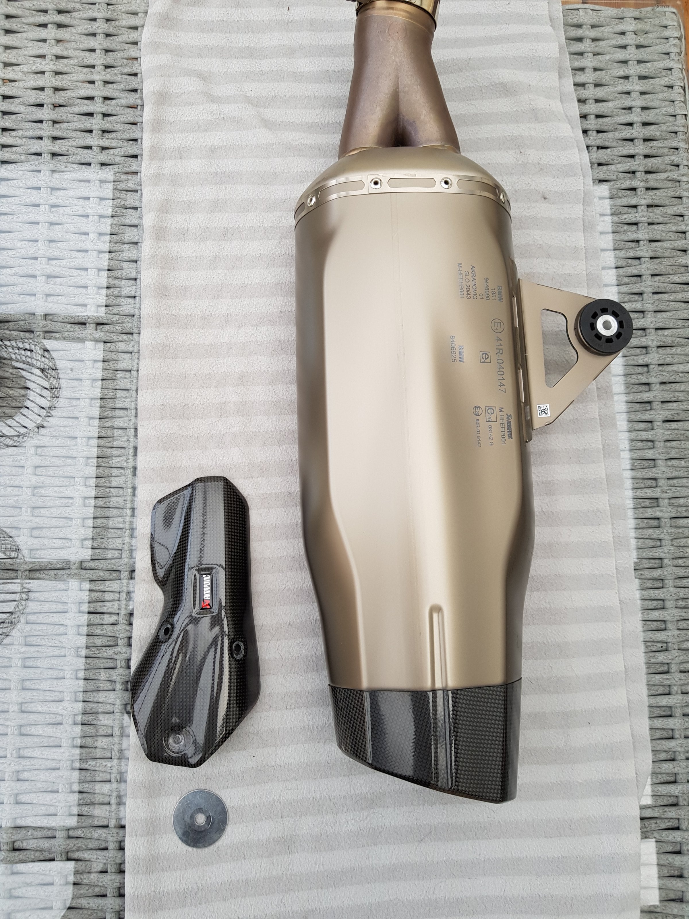 Es handelt sich hier um den Werks-Akrapovic Euro 5 , den BMW aktuell als Sonderausstattung anbietet. Der Akra trägt keinen "HP"-Schriftzug, wie das beim alten Modell der Fall war. Mir ist er leider etwas zu laut, weshalb ich nach ca 100 km auf den Serien-ESD gewechselt habe. Der Akra ist so gut wie neu. Er befand sich auf meiner R 1250 GS Modell 2021.
