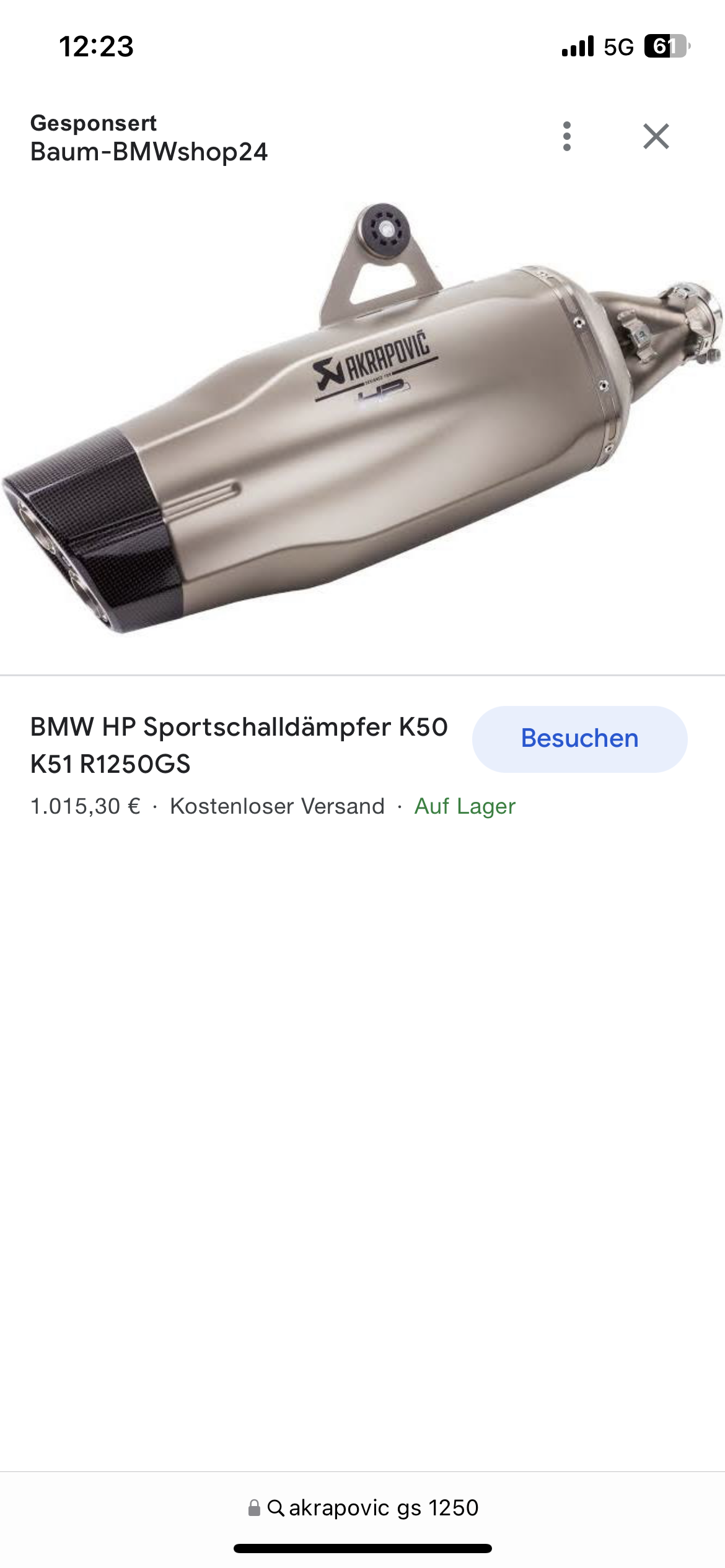 Ich suche einen Akrapovic Euro 5 Schalldämpfer für die GS 1250/Adventure.