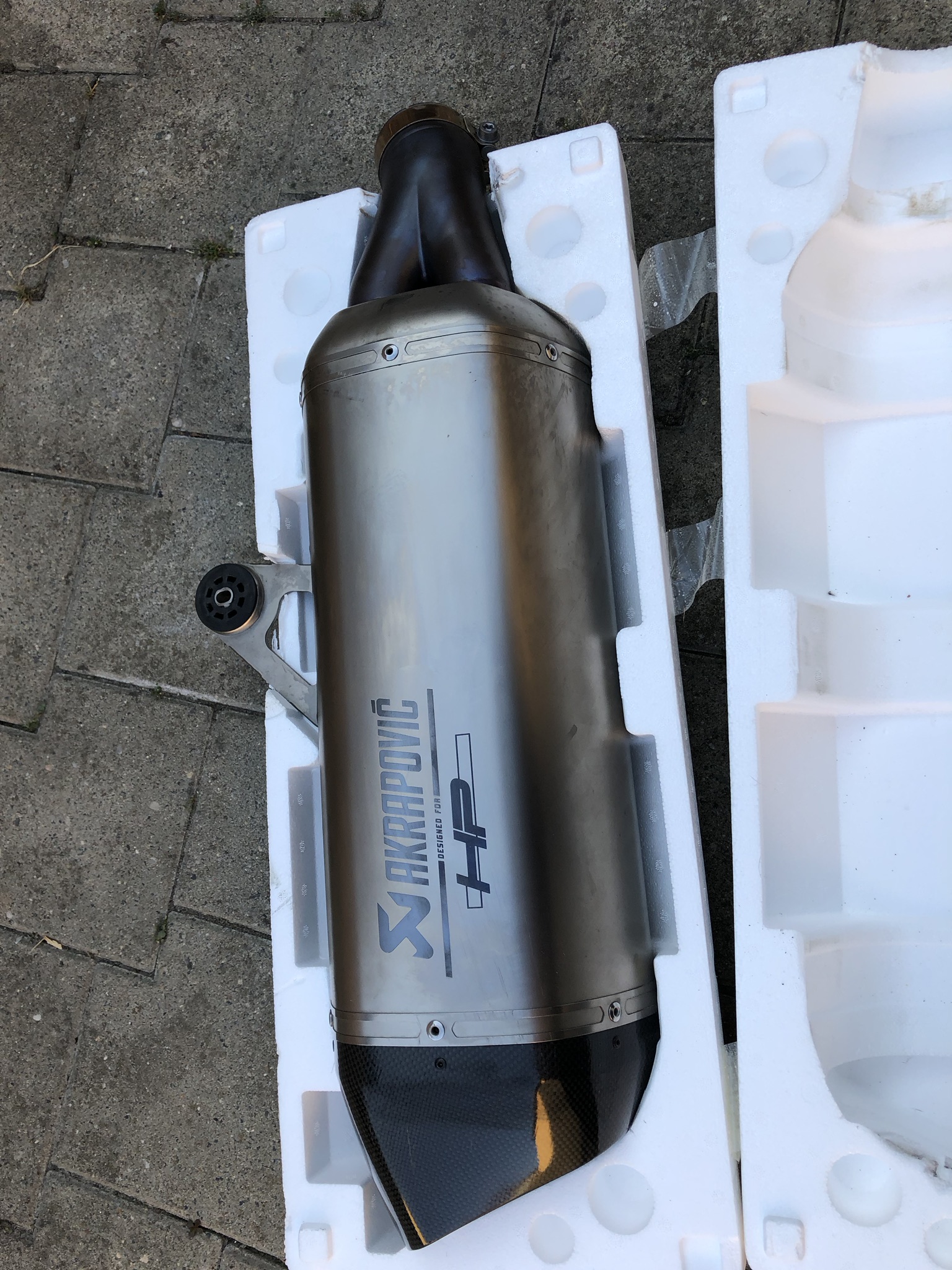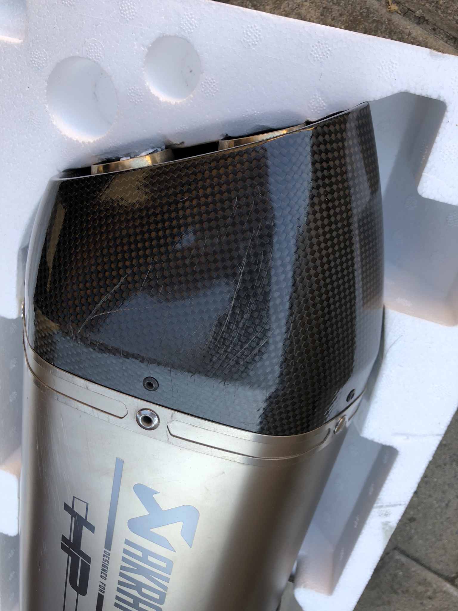 Hatte ich an ca. 1 Jahr an meiner BMW R1200GS LC Bj. 2015 verbaut. Leider ist mir die Maschine einmal umgekippt. Auf der Carbonabdeckung für das Verbindungsrohr ist ein Kratzer. Auf dem Endtopf befinden sich auch ein paar Kratzer, sowie kurz davor auf dem Metall. Eventuell lässt sich das alles polieren. Pulverbeschichten oder lackieren soll wohl auch gehen. Hab es nicht probiert, wollte es nicht schlimmer machen, falls es nicht funktioniert. Im montierten Zustand aus 1 - 2 Meter Entfernung sieht man die Kratzer nicht mehr.