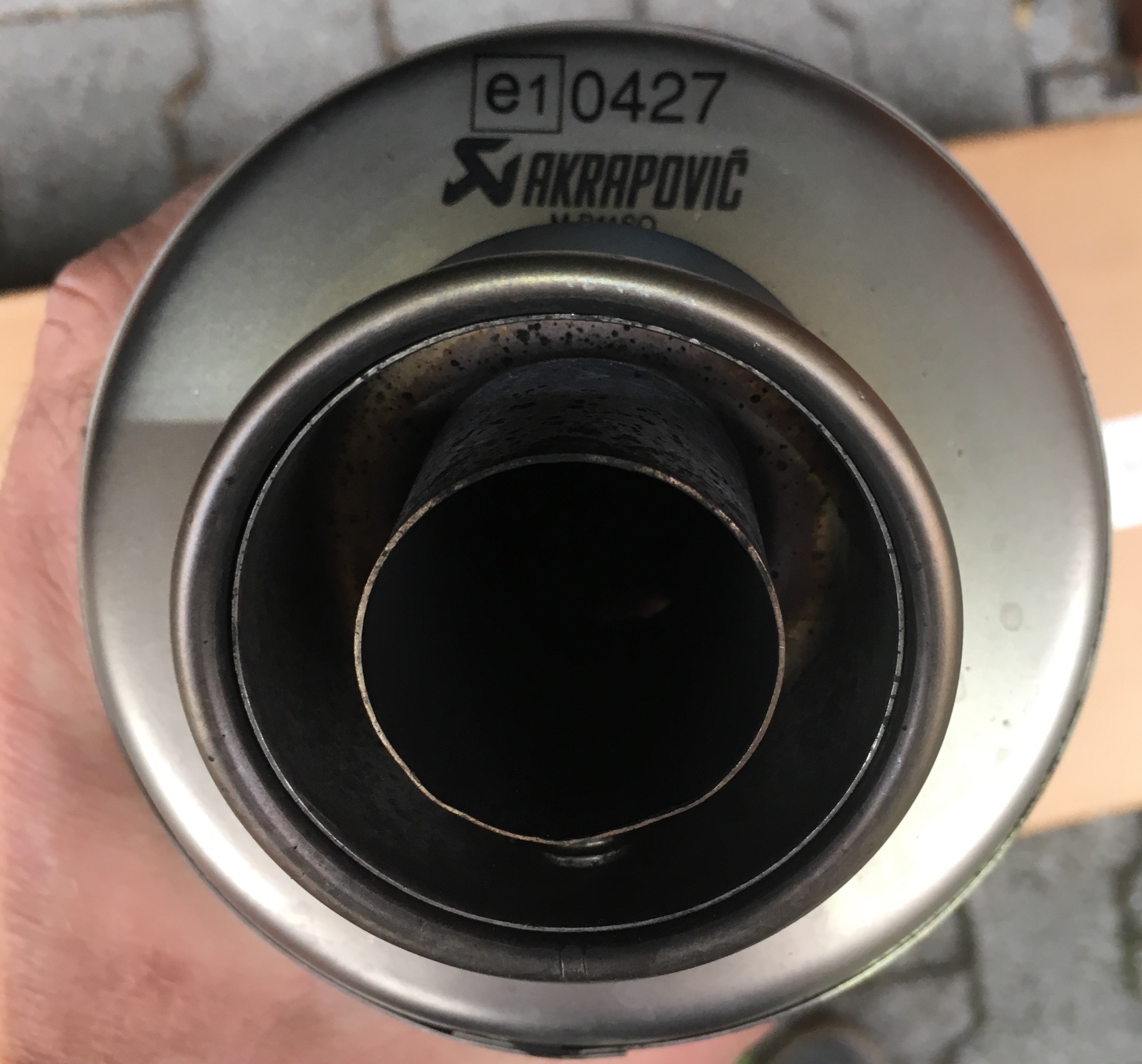 Akrapovic Titan Sportauspuff mit Y Rohr an.