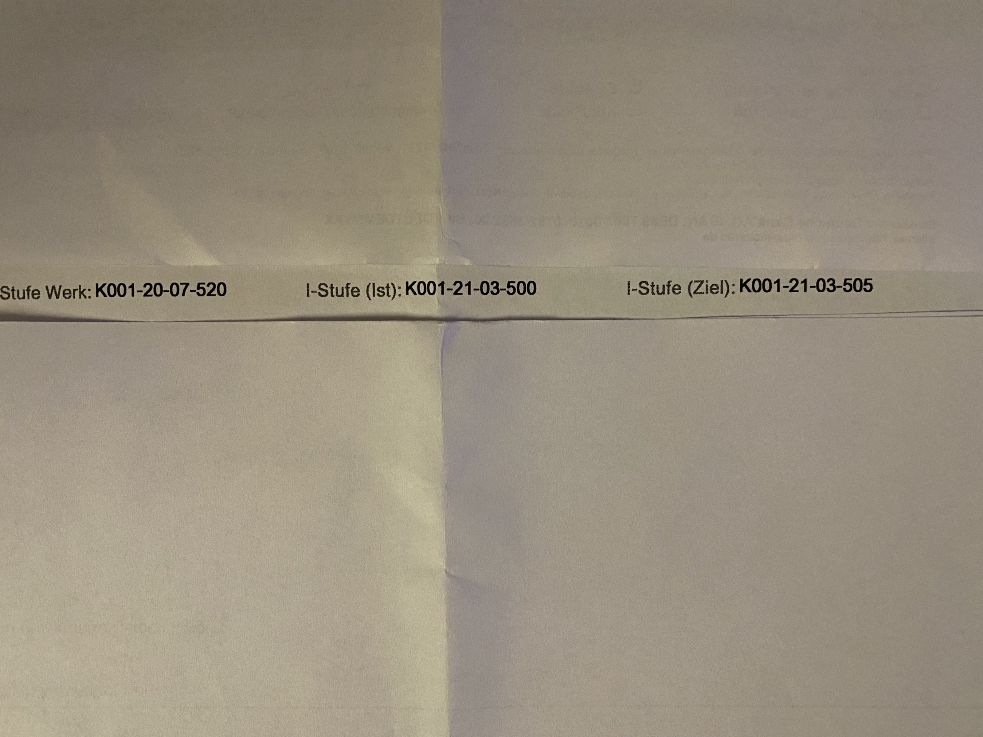 Es ist die interne Softwarebezeichnung oder wie es man nennen will. Die Kopie nach auslesen des Steuergereätes wurde mir mitgegeben und erklären, siehe Foto. Würde gerne es Euch komplett zeigen aber es sind zu viele Daten drauf.