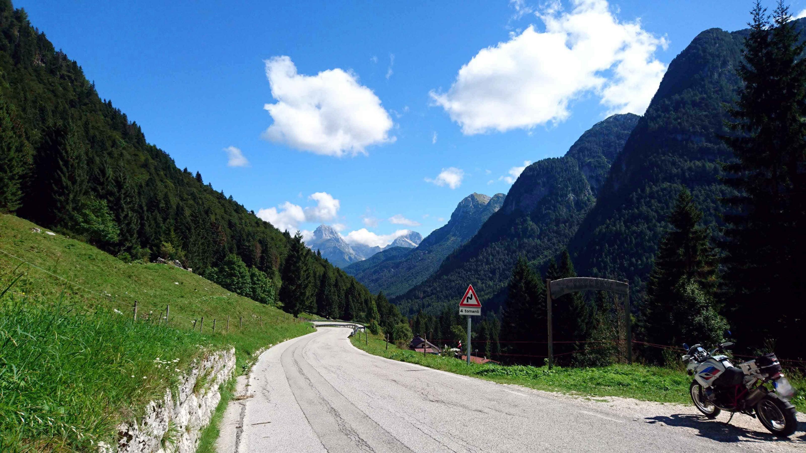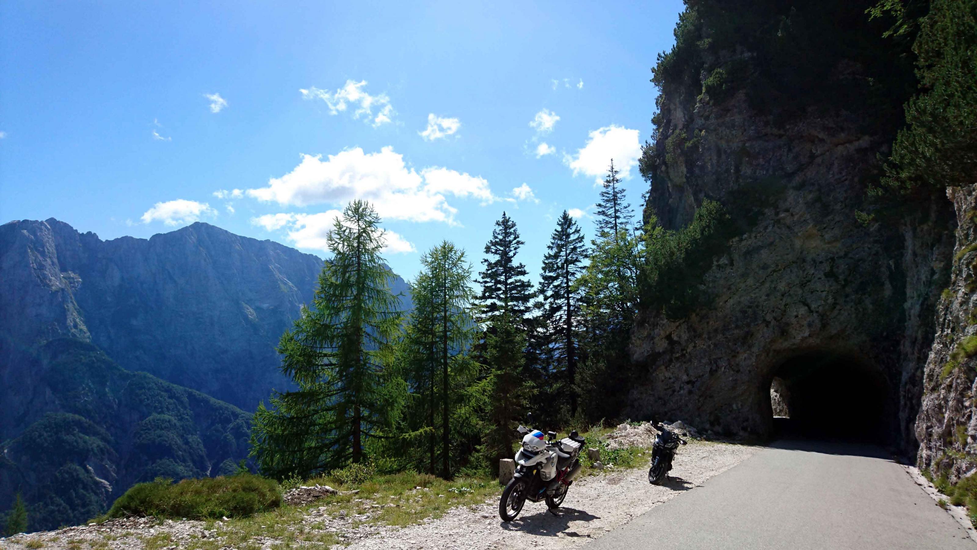 Auffahrt zum Mangartsattel (höchster befahrberer Punkt Sloweniens, 2.055m), die 5,-€ Maut pro Moped lohnen sich definitiv!