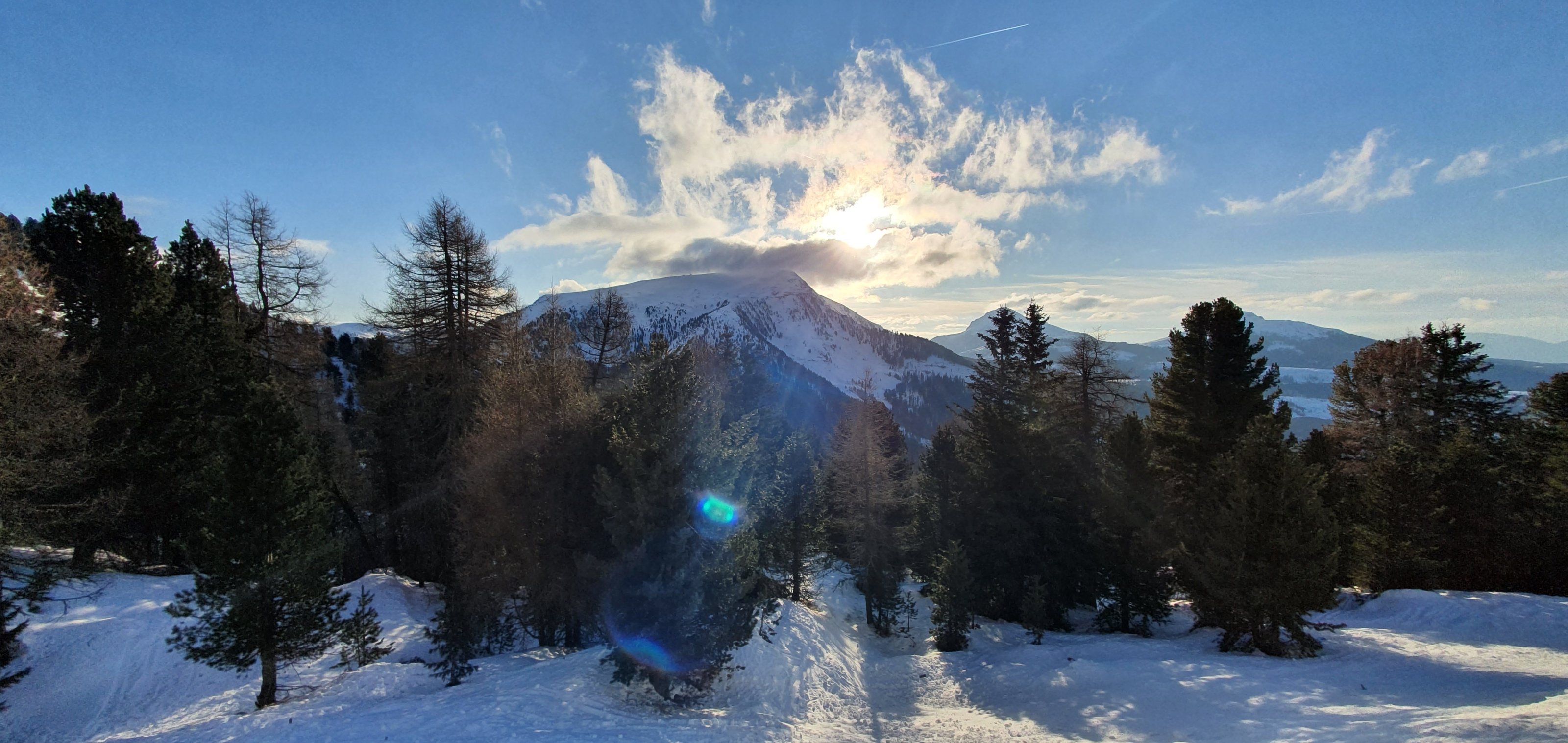 Immerhin in einem klassischem Motorradrevier, den Dolomiten: Sella-Runde, Passo Giau, Pellegrinopass, Fedaja-Pass u.v.m. Nur halt auf Skiern ;)
