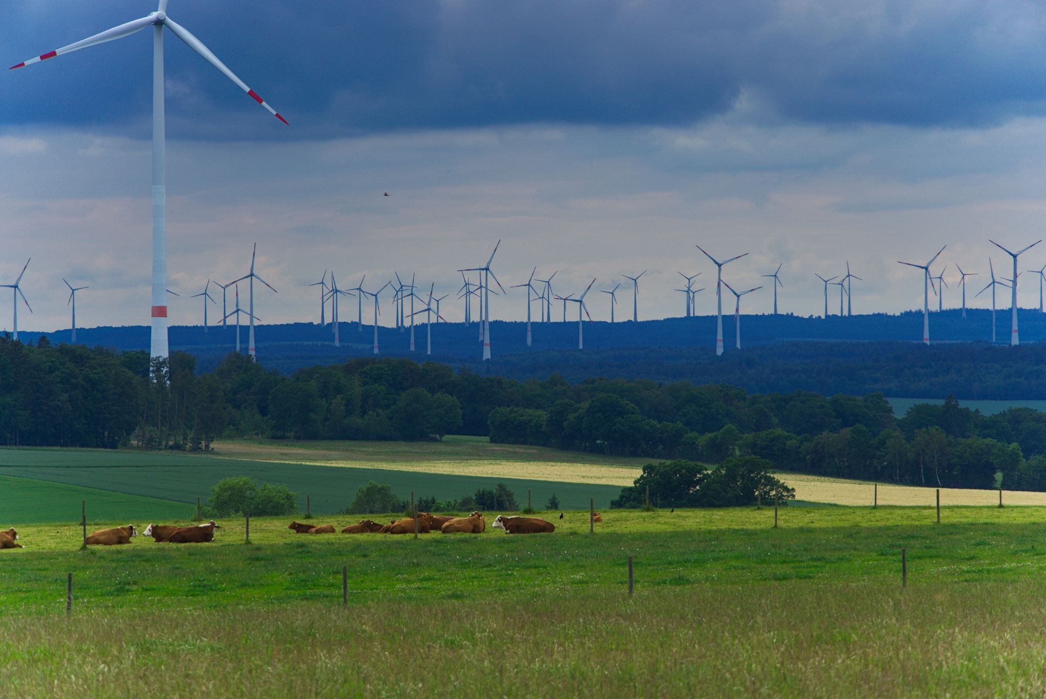 Ja schöne Gegend, besonders der Wald mit den Windrädern