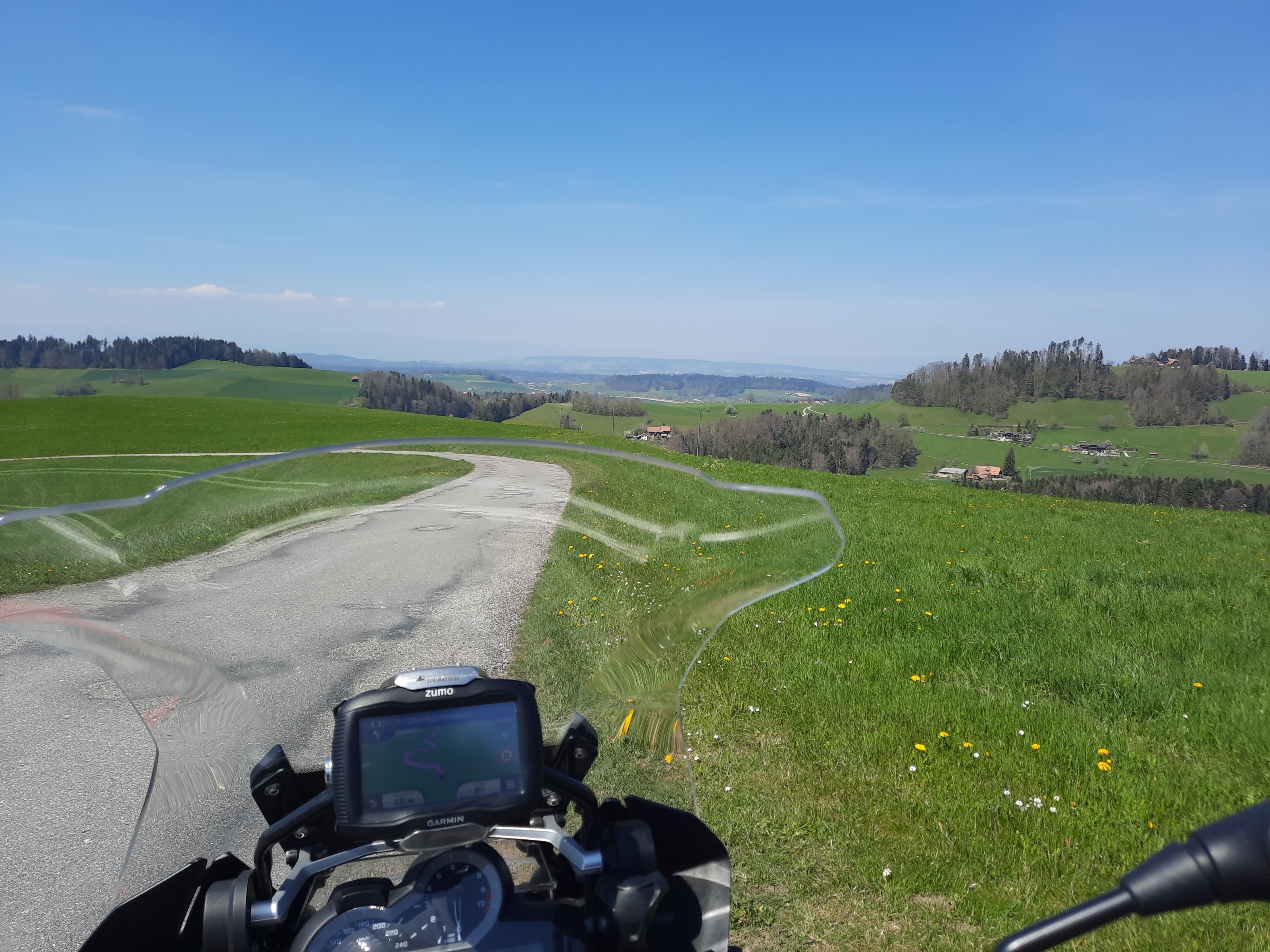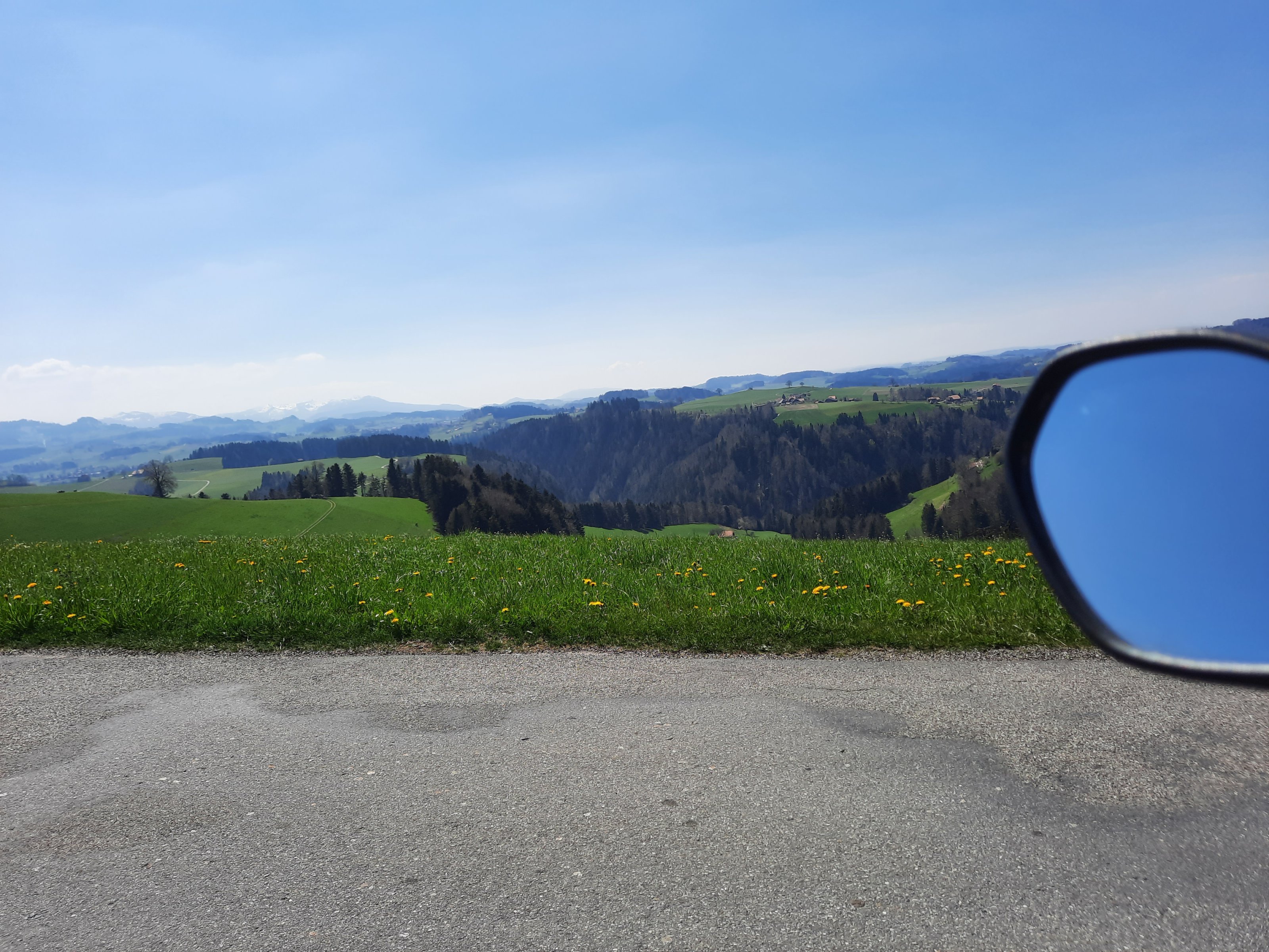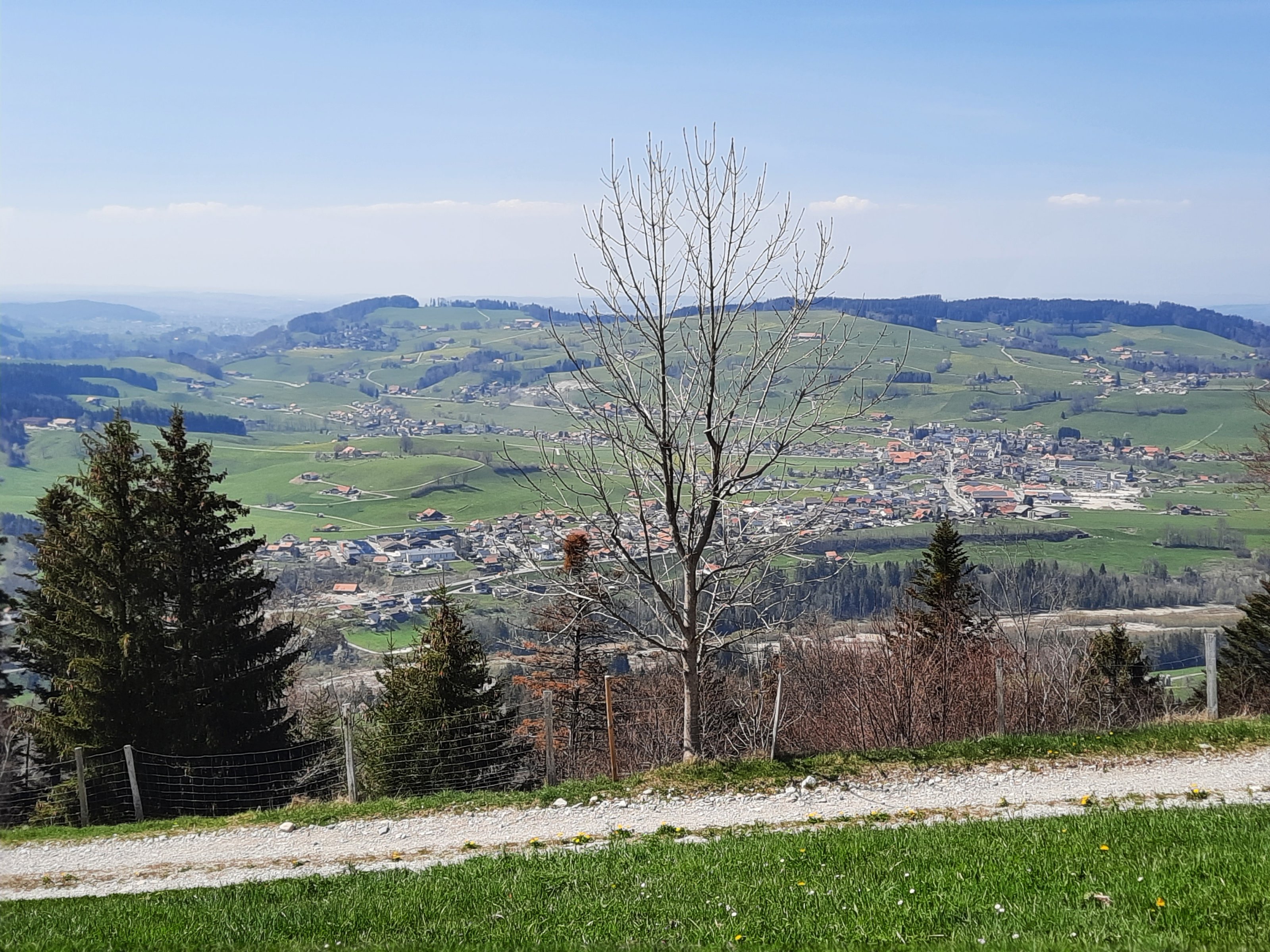 Blick auf Plaffeien. hinter der linken Mulde liegt irgendwo die Stadt Fribourg.