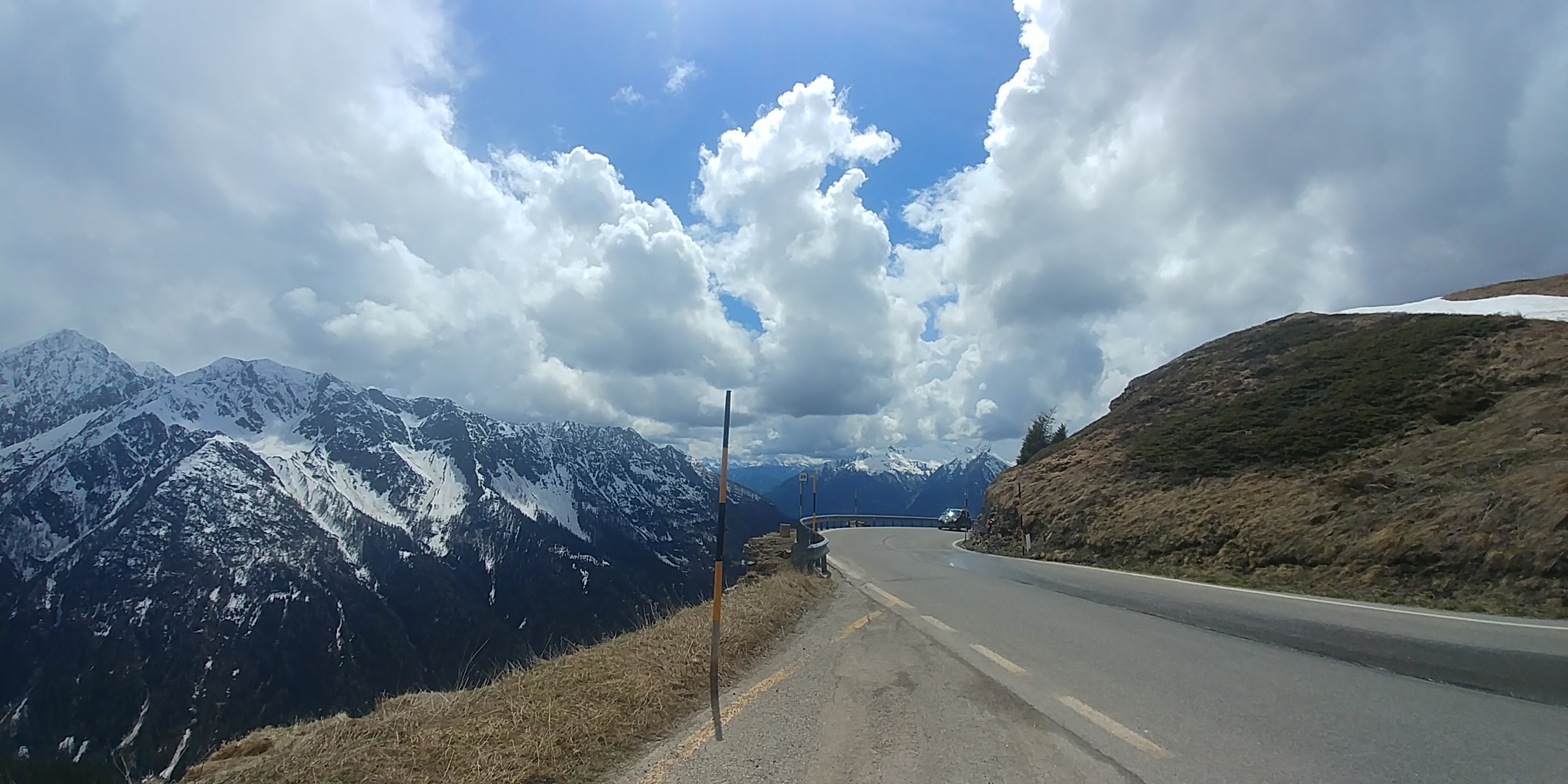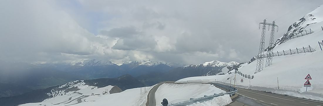 Auffahrt Jaufenpass, Blick nach Norden, teilw. leichter Schneefall