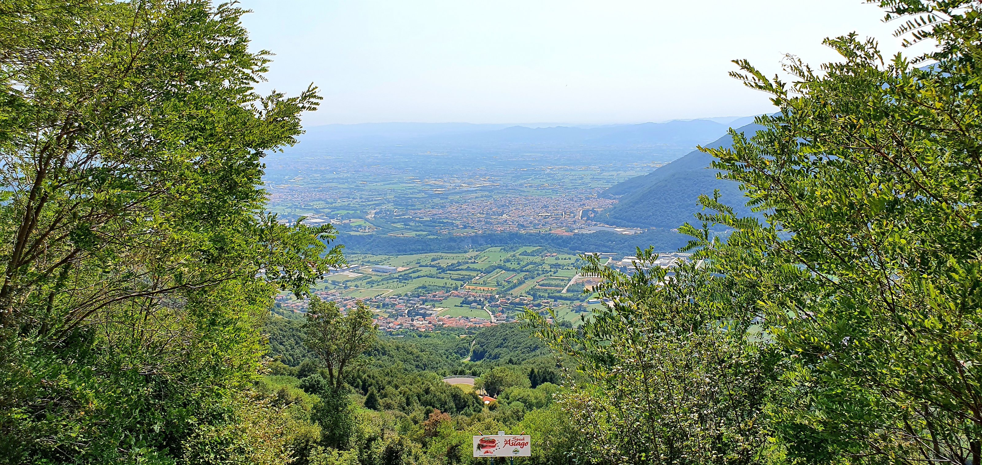 Blick von der Serpentinenstrecke über die venetianische Tiefebene Richtung Vicenza-Padua