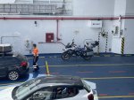 100 Autos, fünf Busse, zwei LKWs, aber mein Fahrzeug war das kleinste. Dafür war ich an Deck mit Abstand der längste (192c