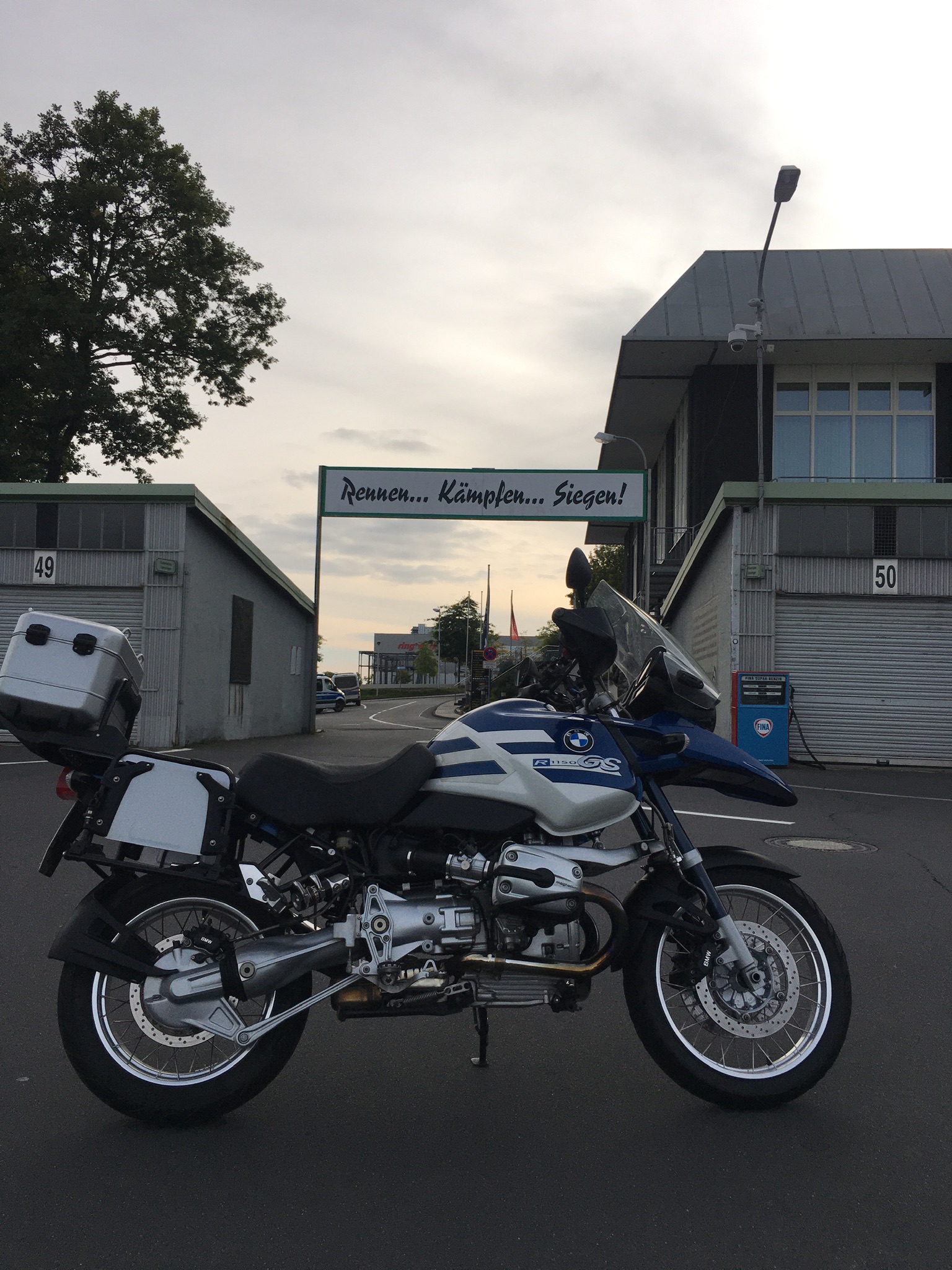 Zurück auf dem Parkplatz steht neben unserem Auto eine R 100 CS: