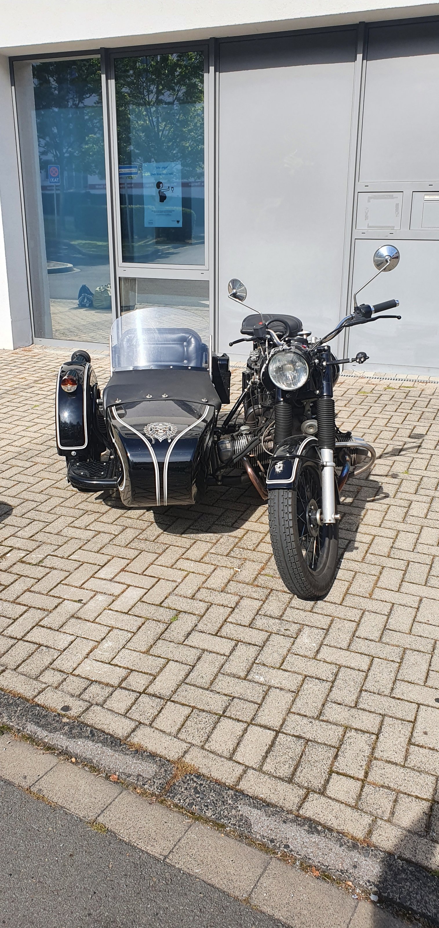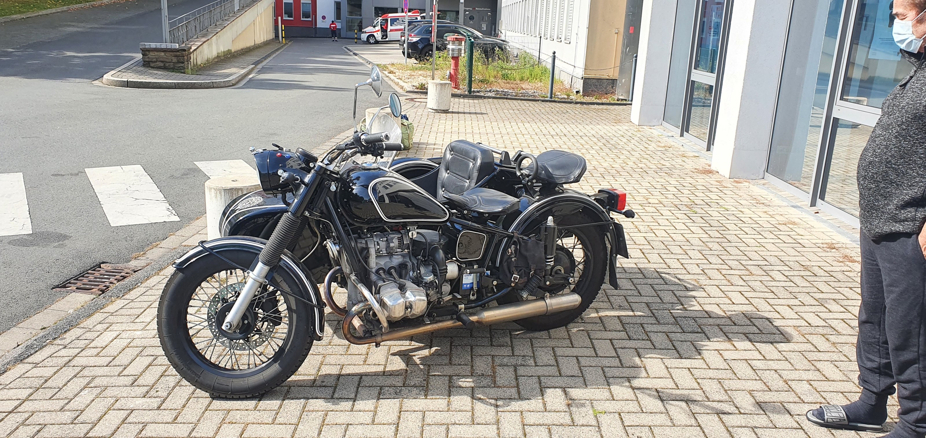 Zurück auf dem Parkplatz steht neben unserem Auto eine R 100 CS: