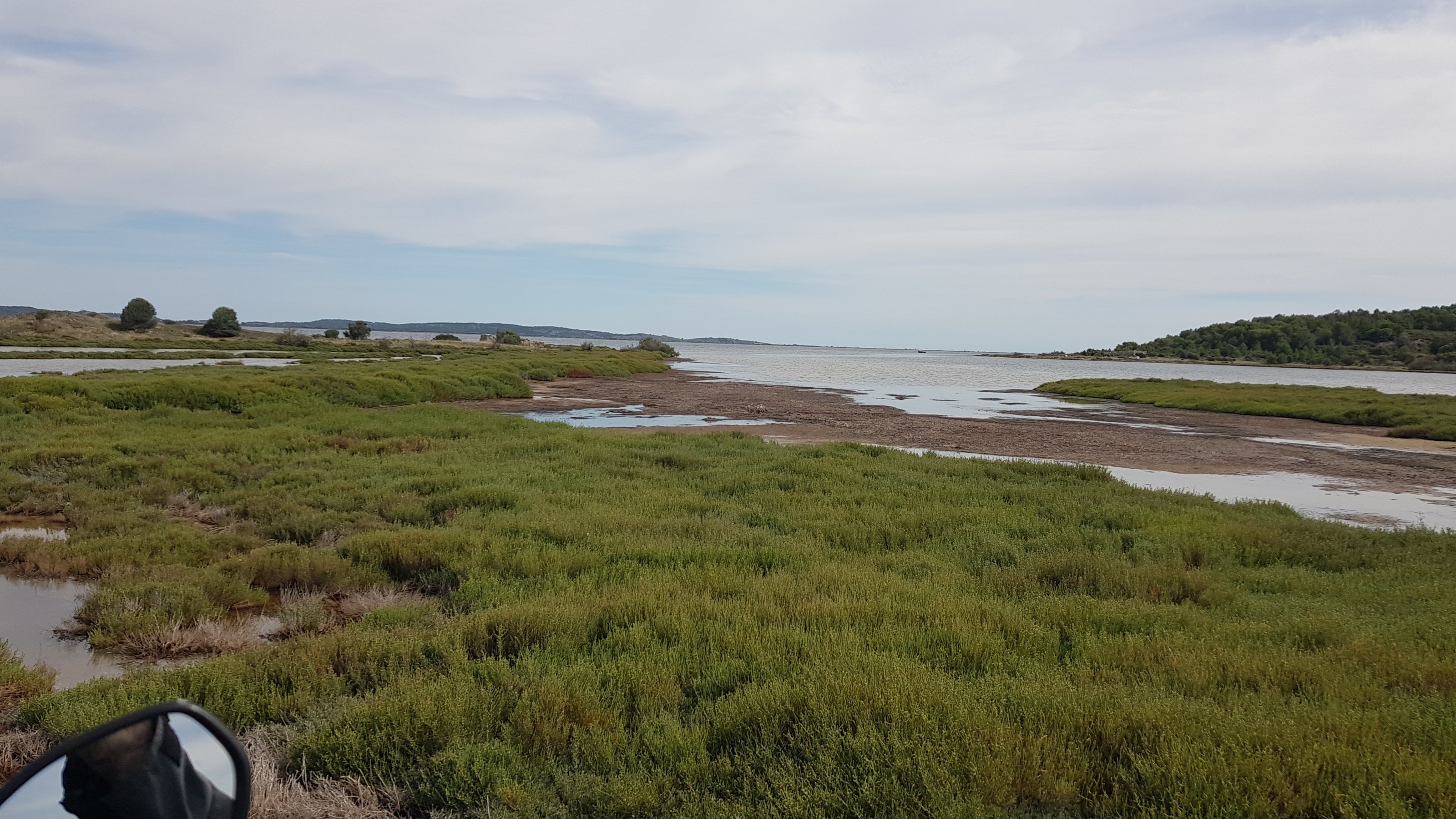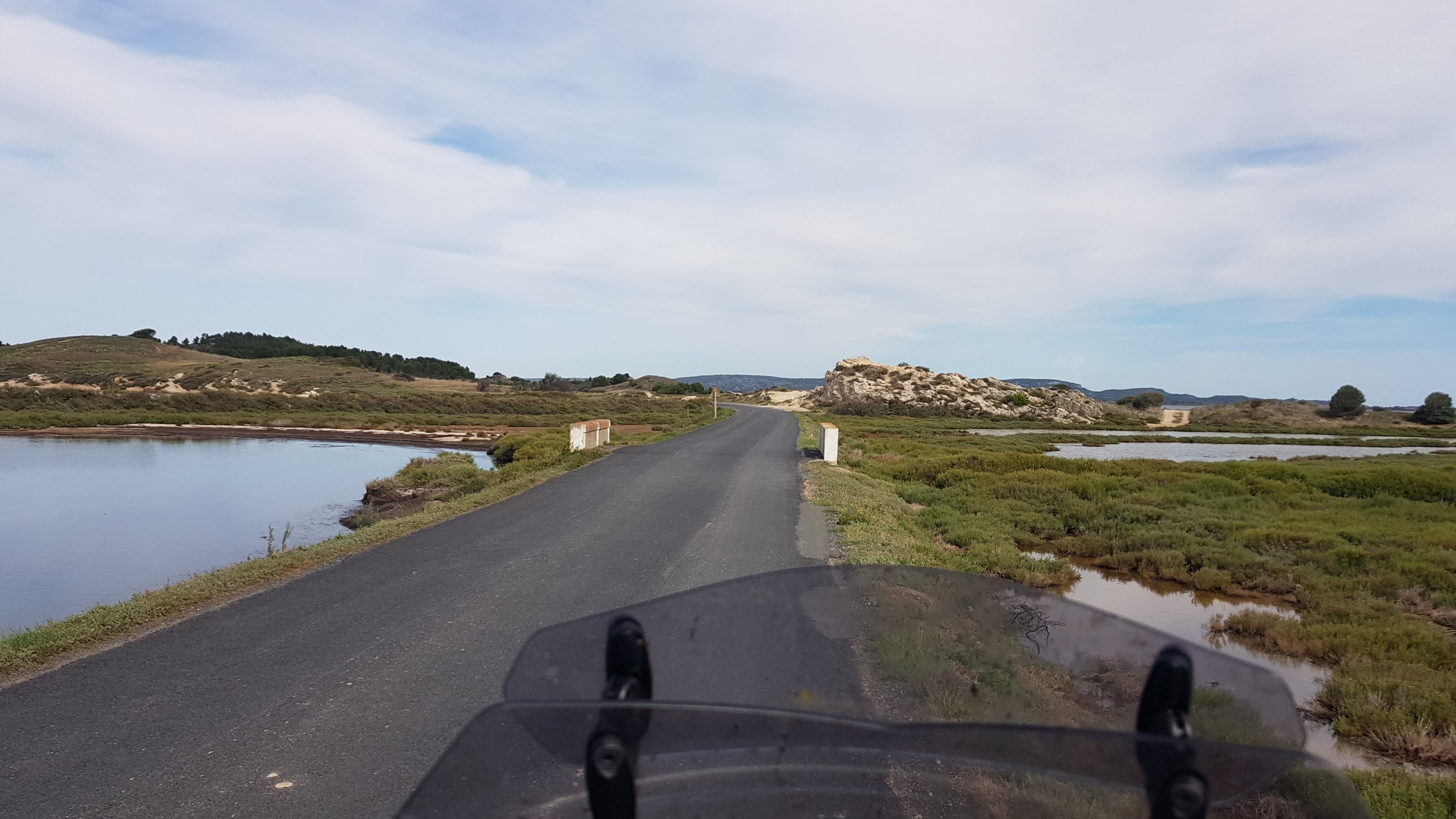 Der rundere Fahrstil.Vor Narbonne Richtung Bages. Der erste Meerkontakt dieses Jahr.