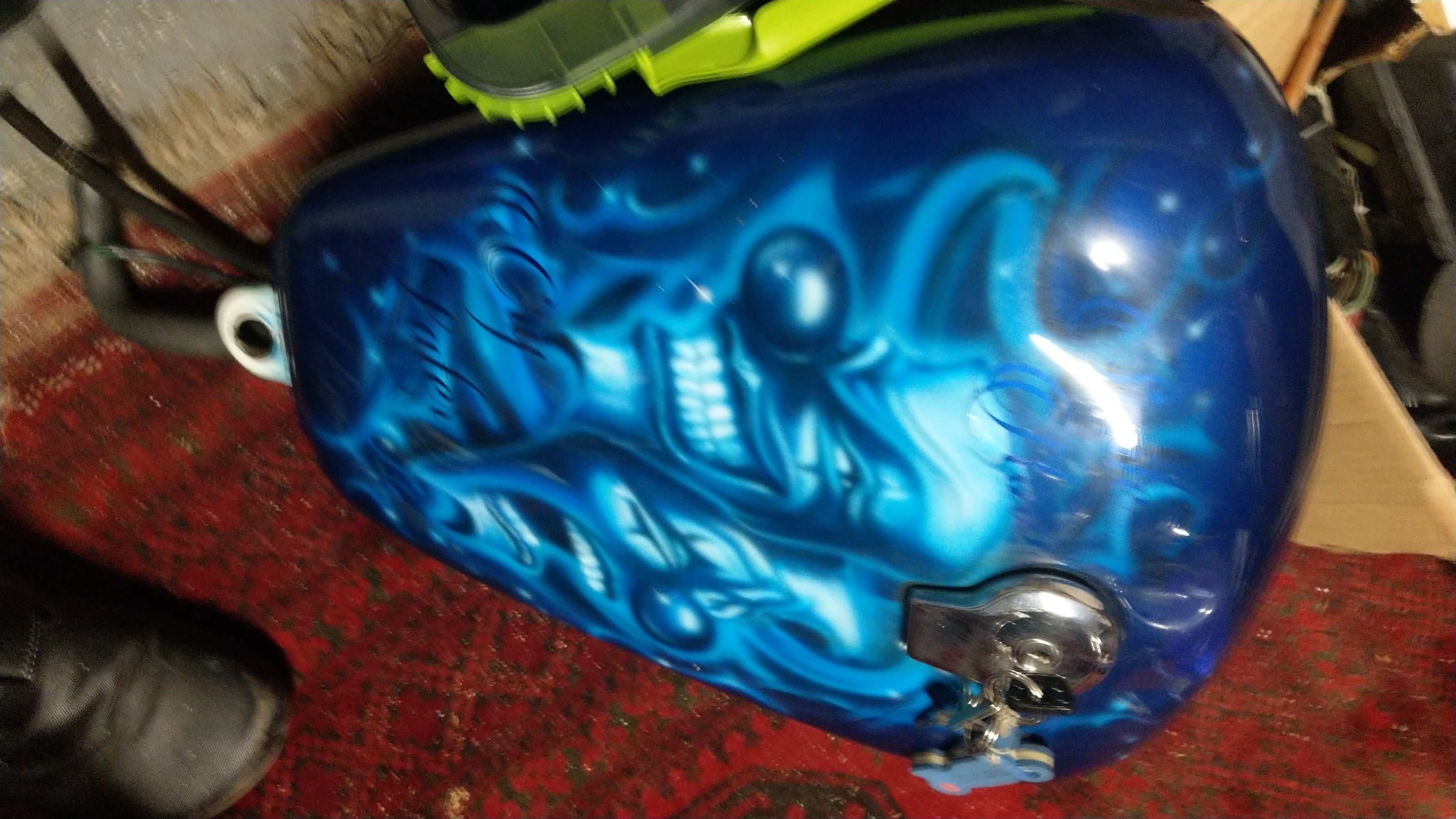 So ging die an einen Yamaha - HĂ€ndler in BrĂ€unlingen, der sie reparierte, bei LAZ Rappenecker in Donaueschingen die Airbrush machen ließ (dessen Logo fand ich auf dem Frontfender) und die XV im Ort verkaufte. Und Rappenecker jr. hat seine MeisterprĂŒfung zum Lackierer im nahen Horb abgelegt. Das fand ich im Archiv des SchwaBo. Aus BrĂ€unlingen kam die XV nach 10 Jahren zurĂŒck zu mir ins GĂ€u.