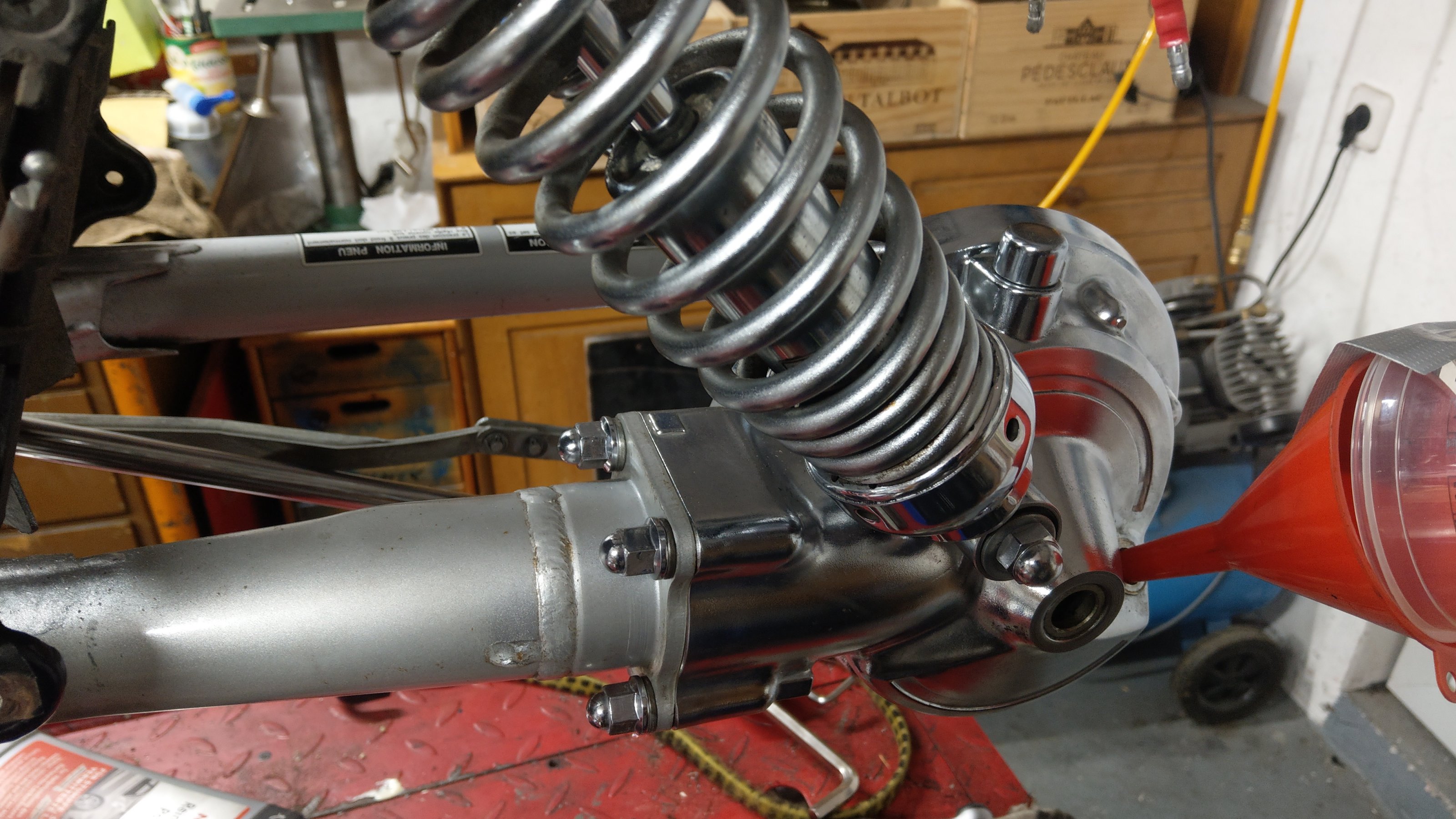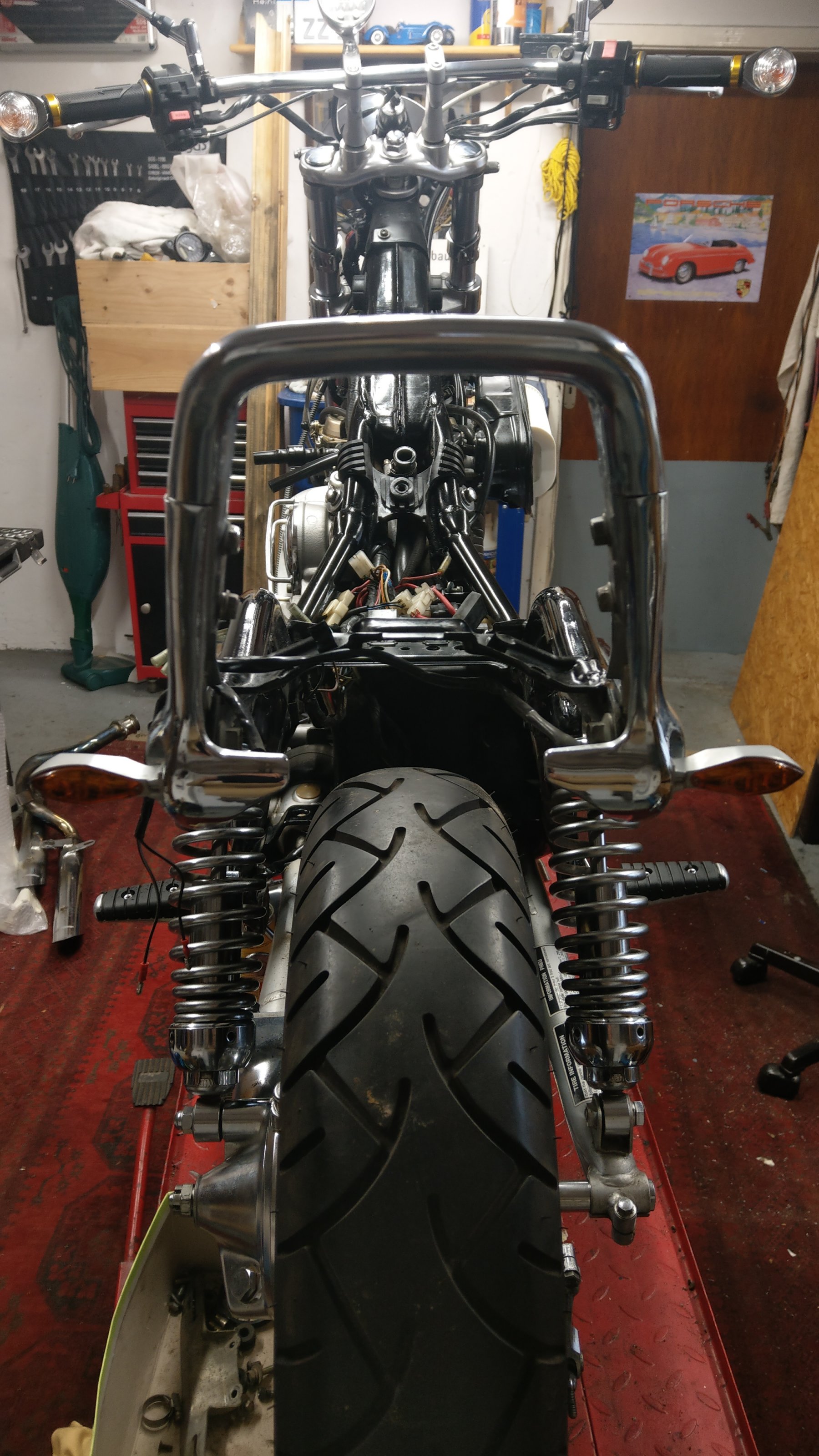 Langsam ist ein Ende in Sicht. War jetzt komplett zerlegt, nur den Motor habe ich im Rahmen gelassen. Bremsen, Vergaser, Gabel, Elektrik, Auspuffanlage, Antrieb zerlegt, Welle gestaburagst, alles geputzt und poliert, jeden noch so kleinen Schraubenkopf. Ventilservice, Öl und Filter, Öl HAG, Neues Felgendesign, Details wie den Deckel vom AusgleichsbehĂ€lter, Styling bleibt bei Schwarz - gold - chrom.