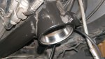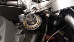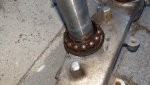 Noch ein paar Fotos von soeben. Die obere Lagerschale mit der alten reinklopfen ist ja sehr einfach. Etwas anders ist das mit der unteren, die kommt gern schräg, fällt runter, man dengelt sich auf die Pfoten oder zerklopft den Rand der neuen Schale.
